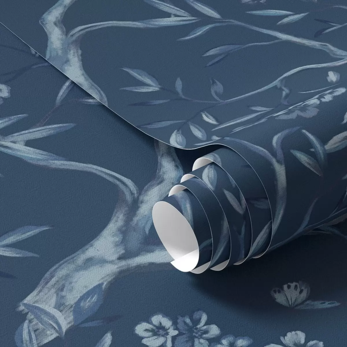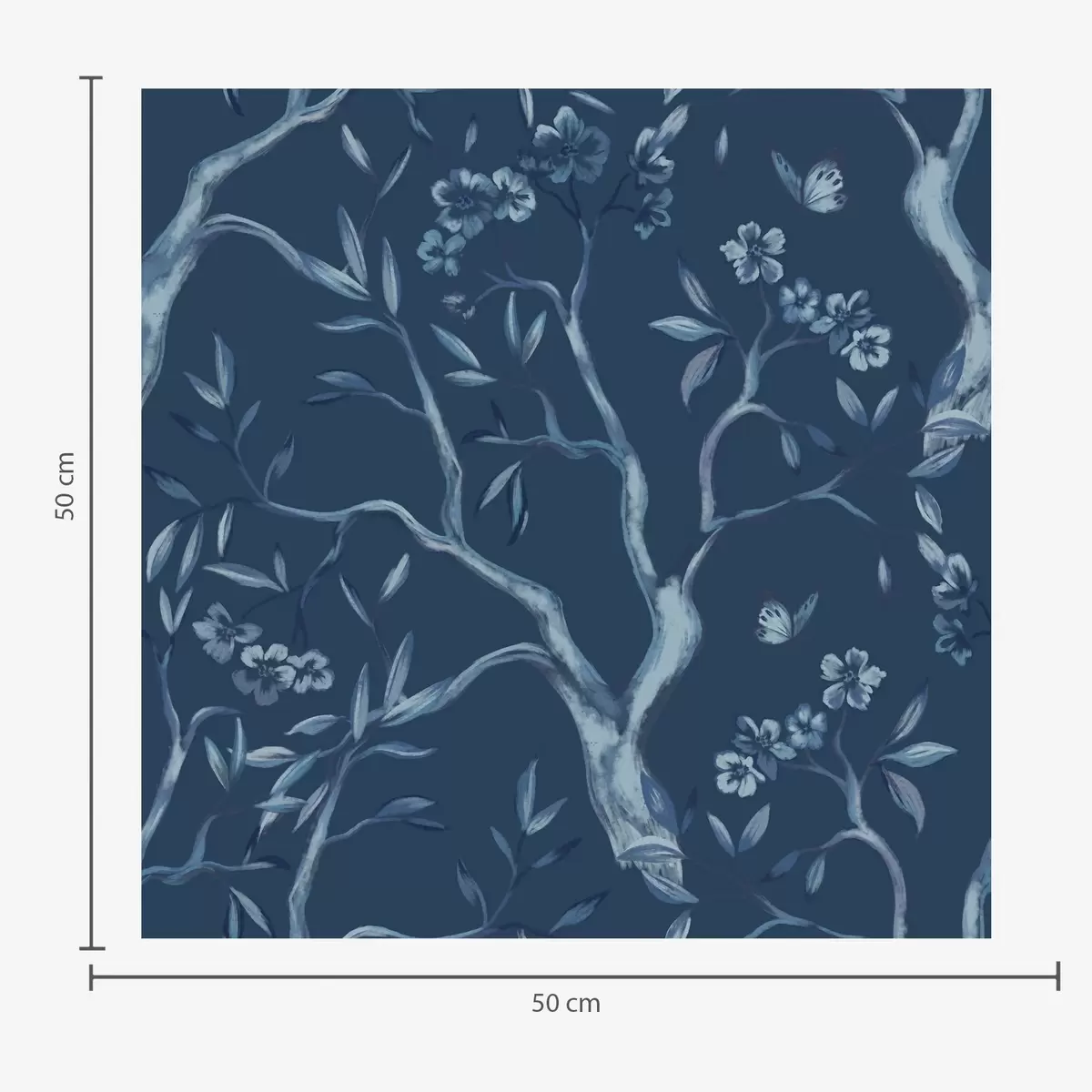 Tapetai Mėlynos žydinčios šakos su drugeliais ant tamsaus fono Nr. a00951v1