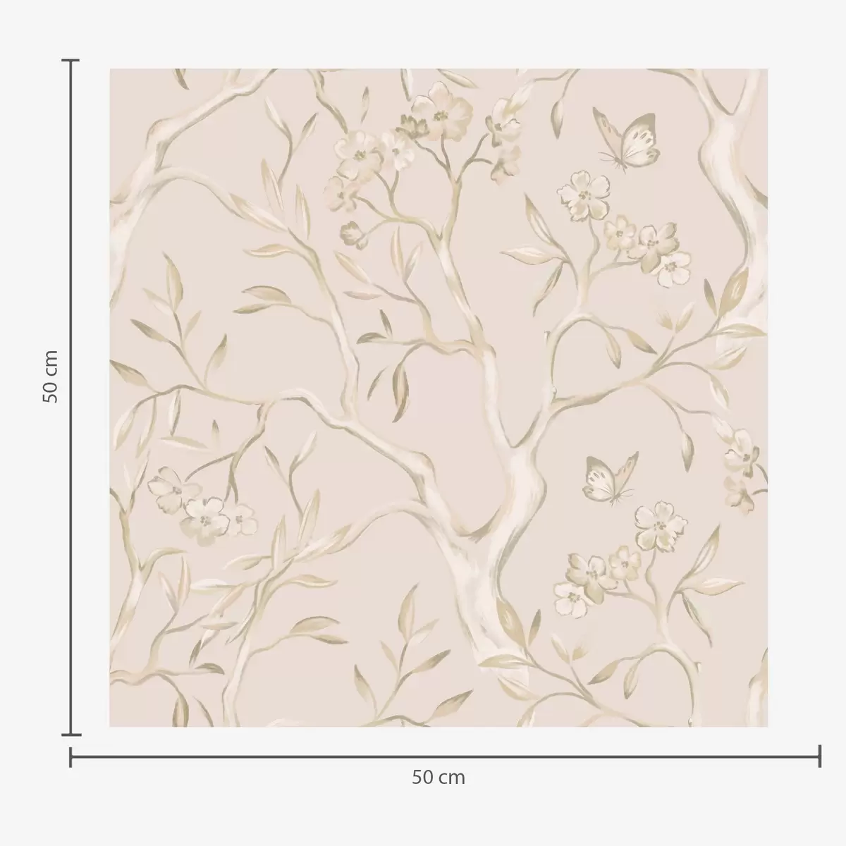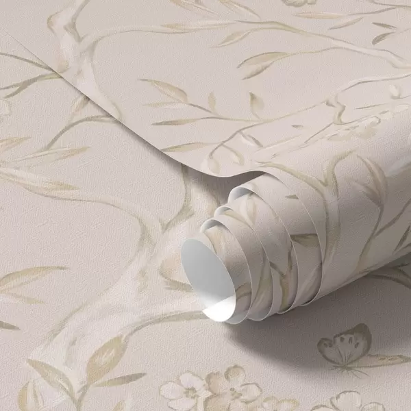 Tapetai Smėlio spalvos žydinčios šakos su drugeliais ant švelnaus fono Nr. a00951v2