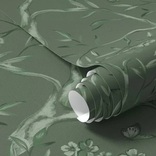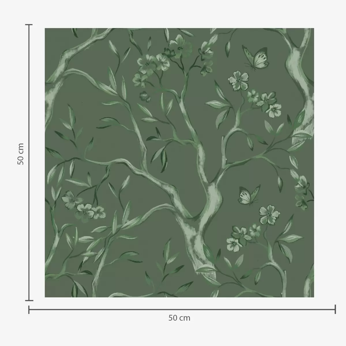 Tapetai Žalios žydinčios šakos su drugeliais ant tamsaus fono Nr. a00951v3