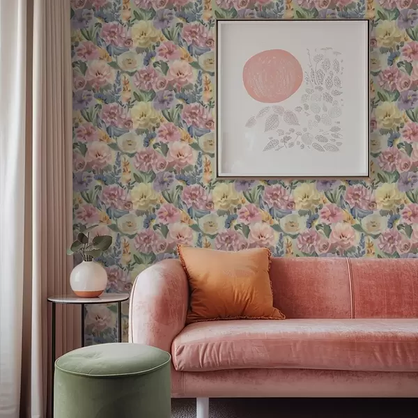 Tapetai Pastelinės spalvos neryškios teptuko gėlės, švelni spalvų paletė Nr. a00954