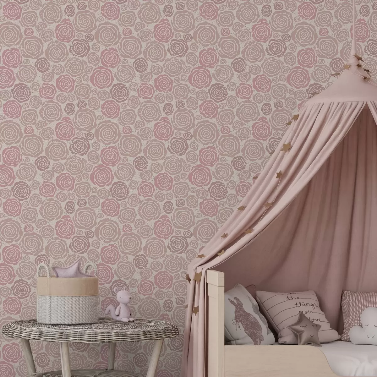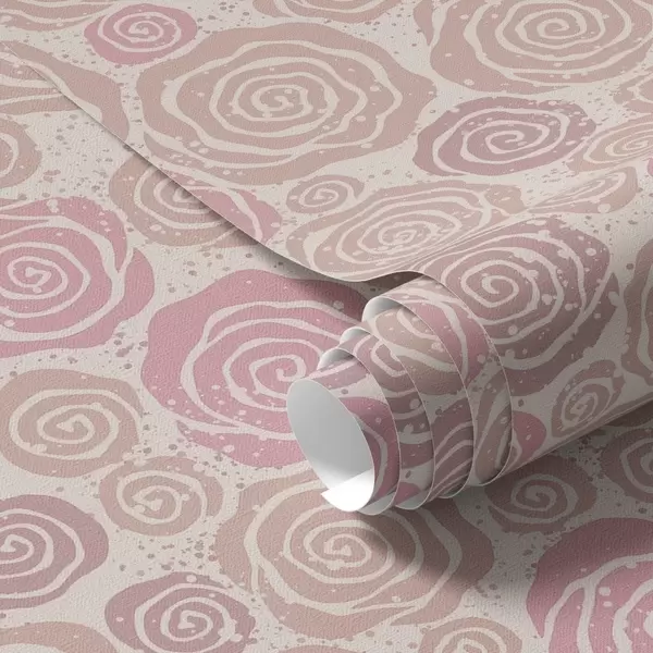 Tapetai Spiralinės rožinės rožės ir purslai ant šviesaus fono Nr. a00955