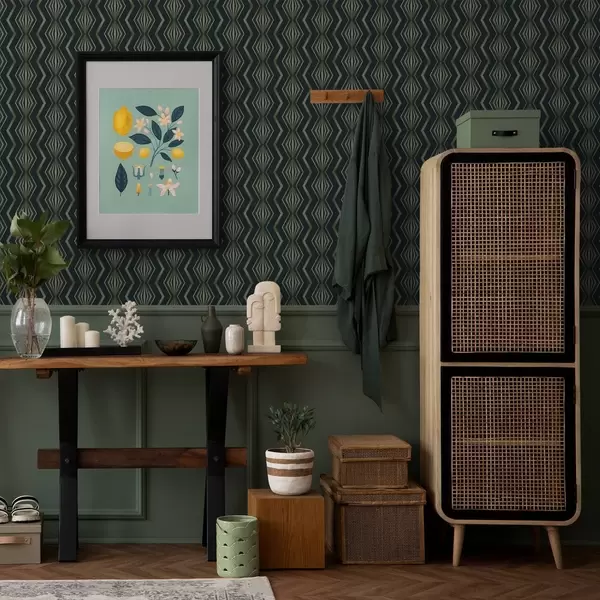 Tapetai Tamsiai žalios spalvos rombo formos geometrinis raštas Nr. a00973v1