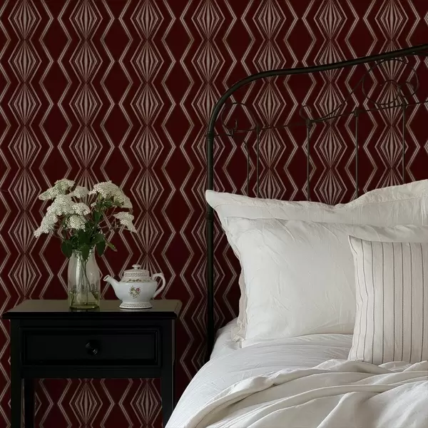 Tapetai Bordo fonas su ritmingais rombais ir zigzago linijomis Nr. a00974