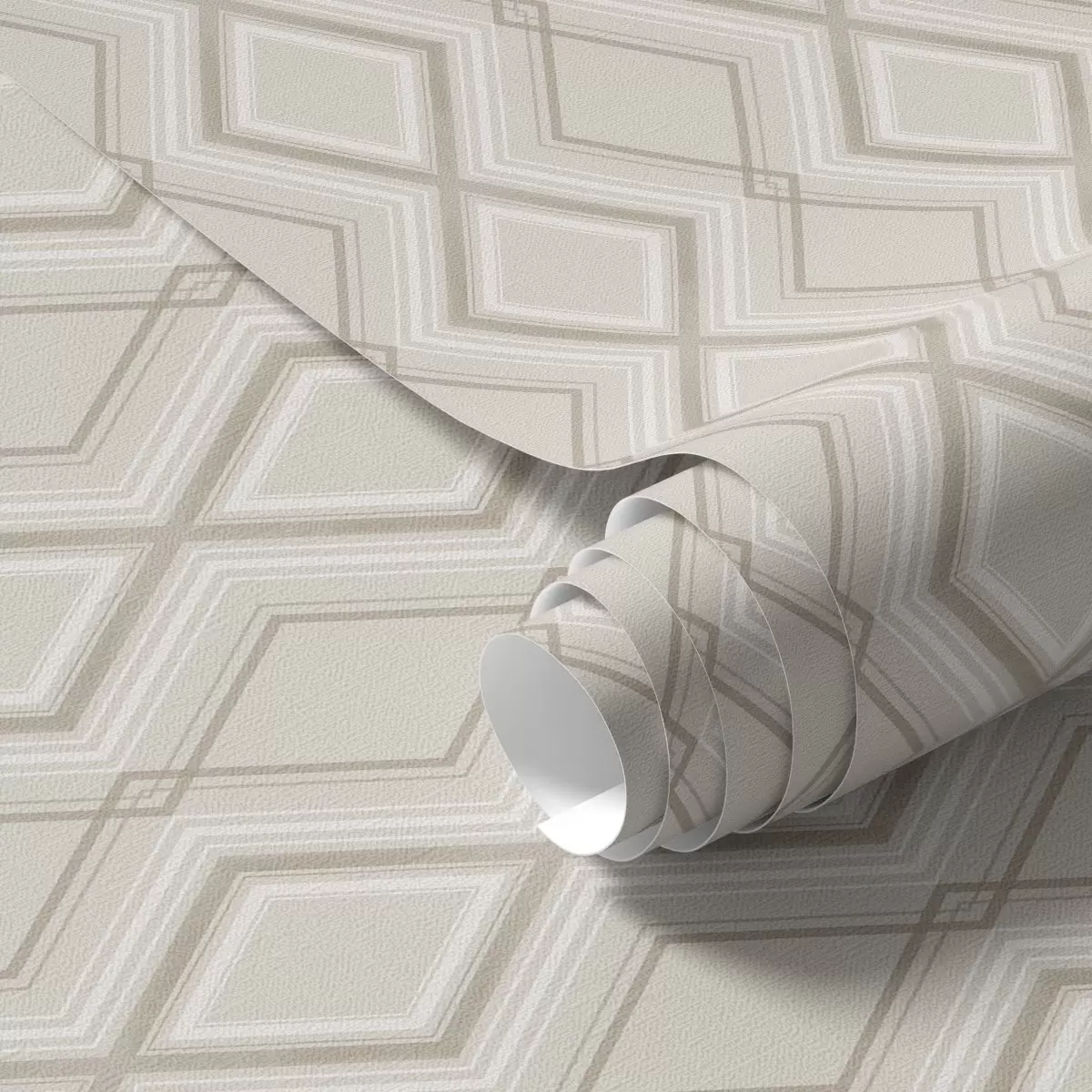 Tapetai Šviesiai smėlio spalvos fonas su daugiasluoksniu rombo formos tinkleliu Nr. a00975v2