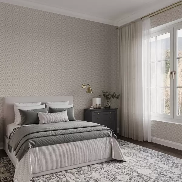 Tapetai Šviesiai smėlio spalvos fonas su daugiasluoksniu rombo formos tinkleliu Nr. a00975v2