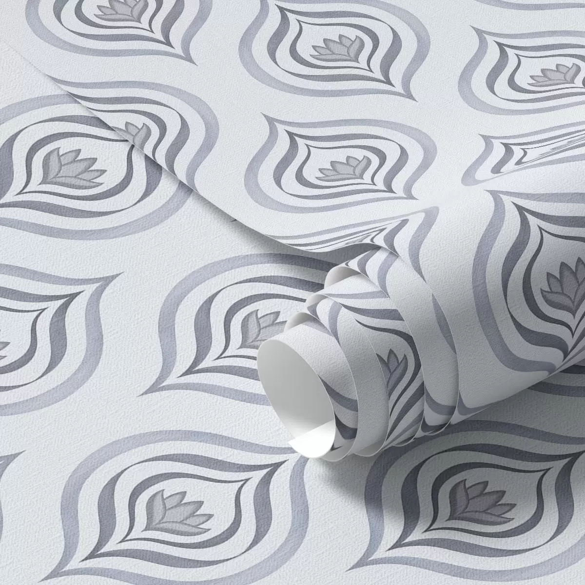 Tapetai Kietas lašelių motyvas su gėle pilkai mėlynų atspalvių Nr. a00977v3