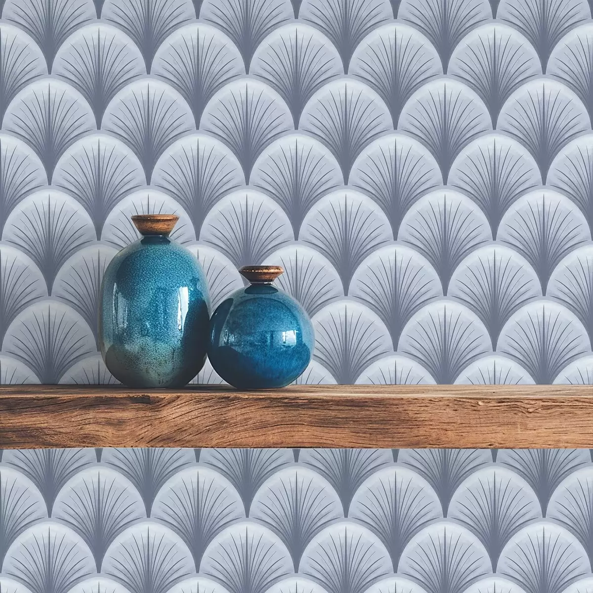 Tapetai Mėlynos ventiliatoriaus arkos su spinduliais ant šviesiai mėlyno fono Nr. a00978v1