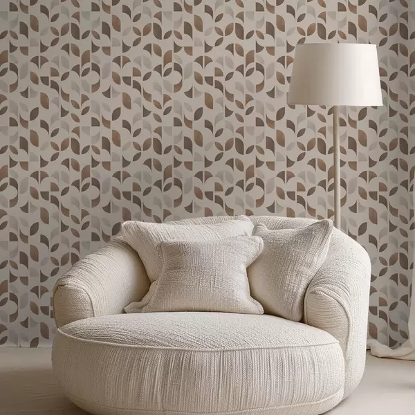 Tapetai Pusapskritimų ir lapų ritmas šiltų karamelės rudos spalvos tonais Nr. a00986v1
