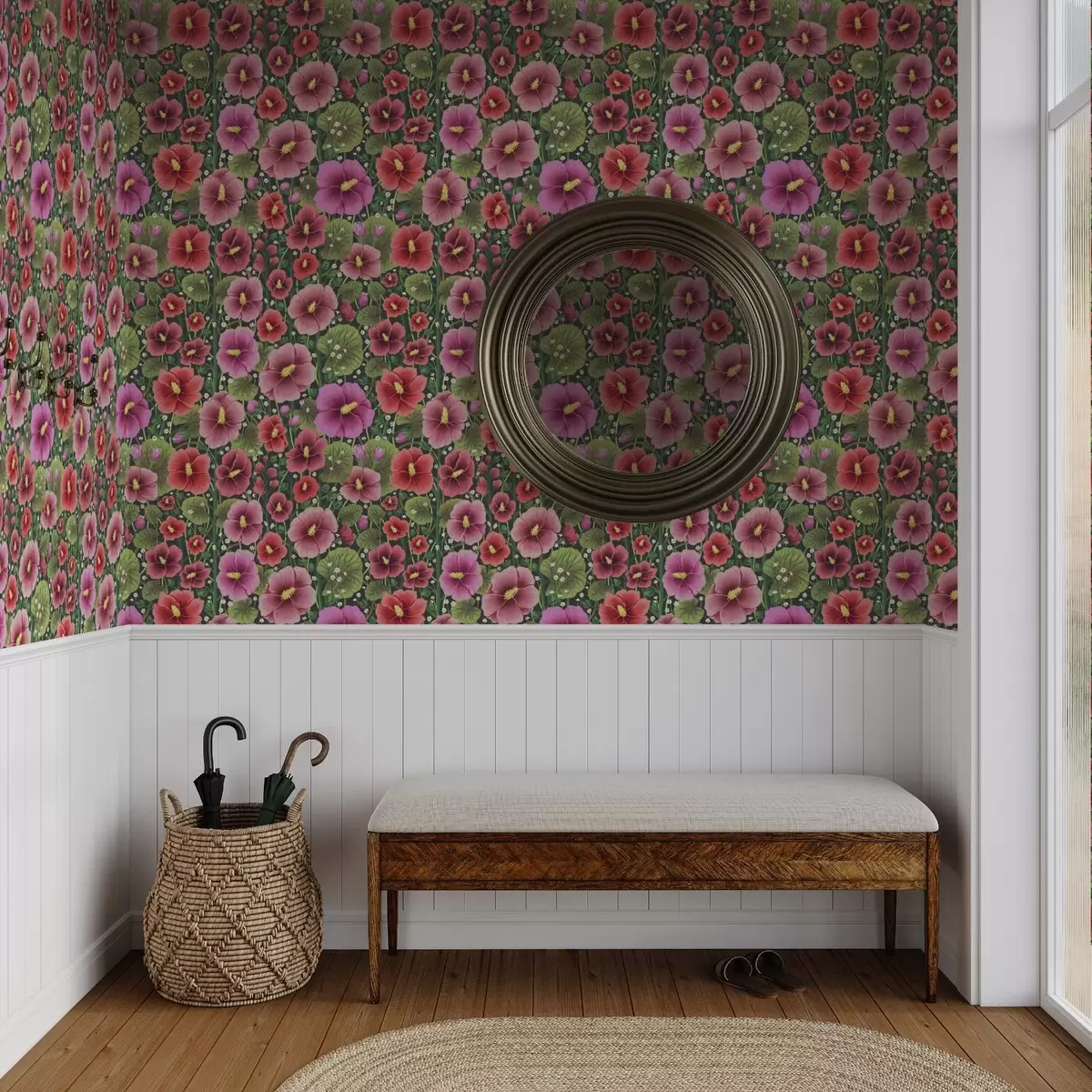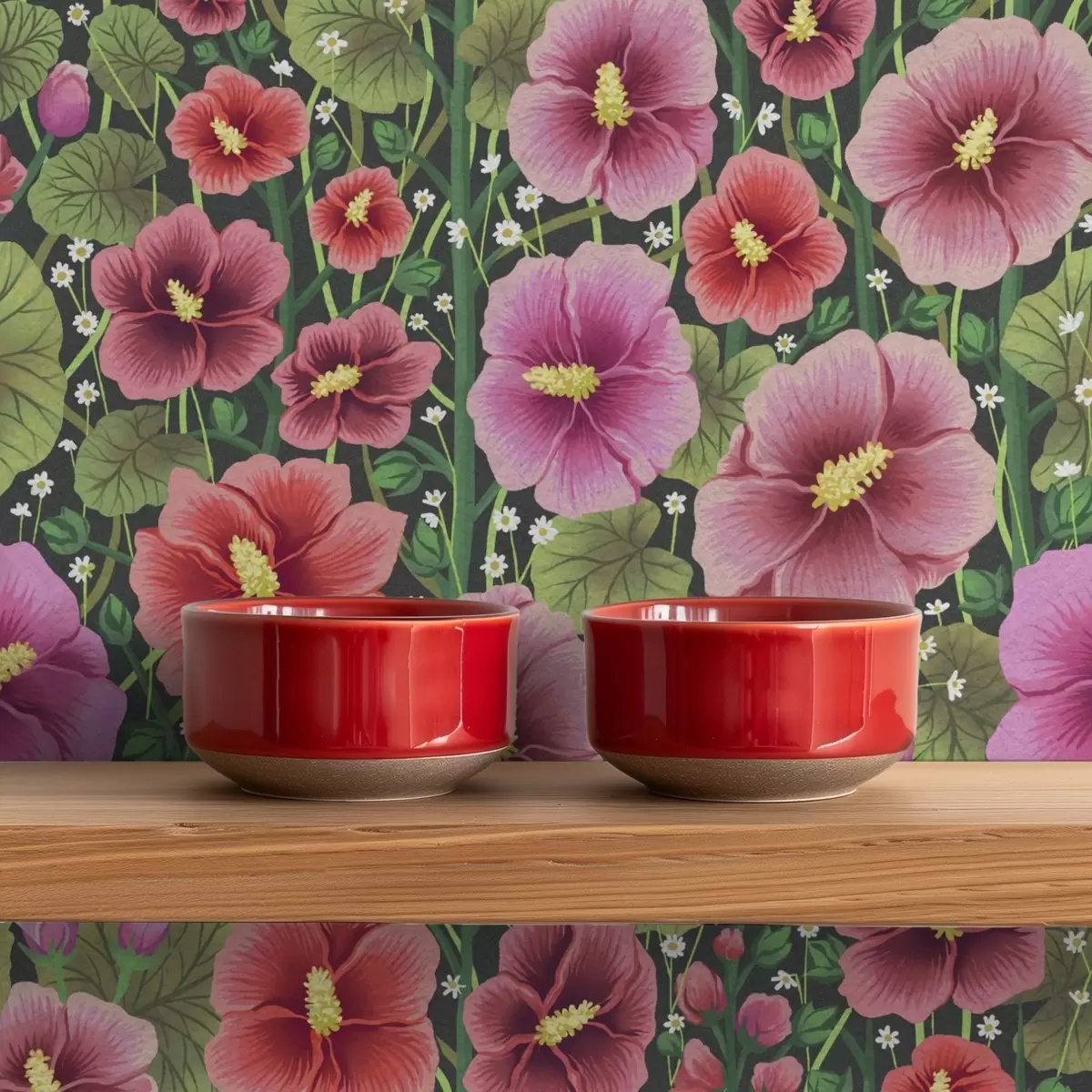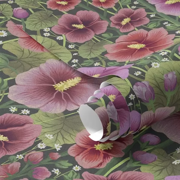 Tapetai Ryškūs hibiskų žiedai ir žaluma ant tamsaus fono Nr. a00993v2