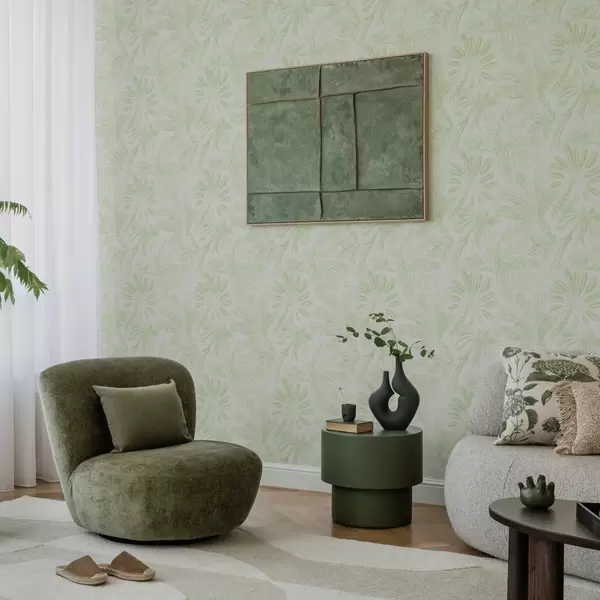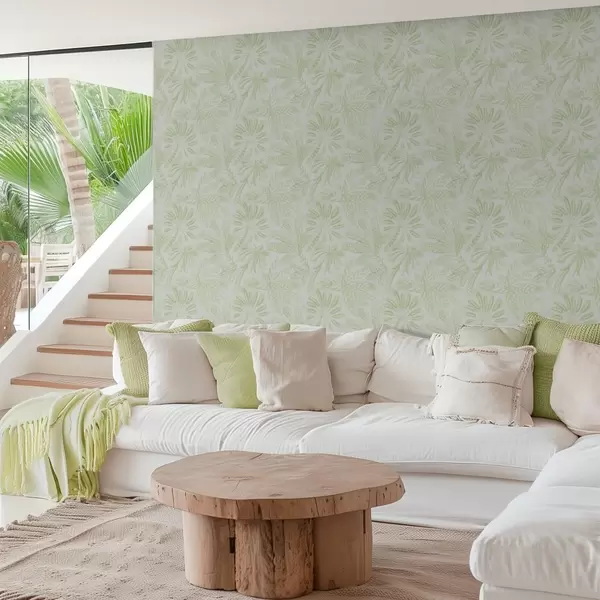 Tapetai Esquissé de feuilles tropicales dans des tons vert clair frais Nr. a01001v1