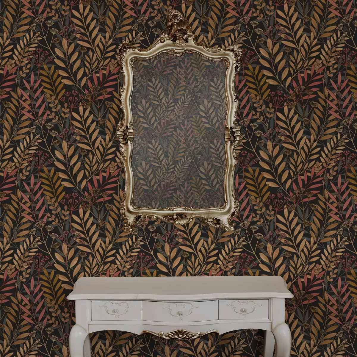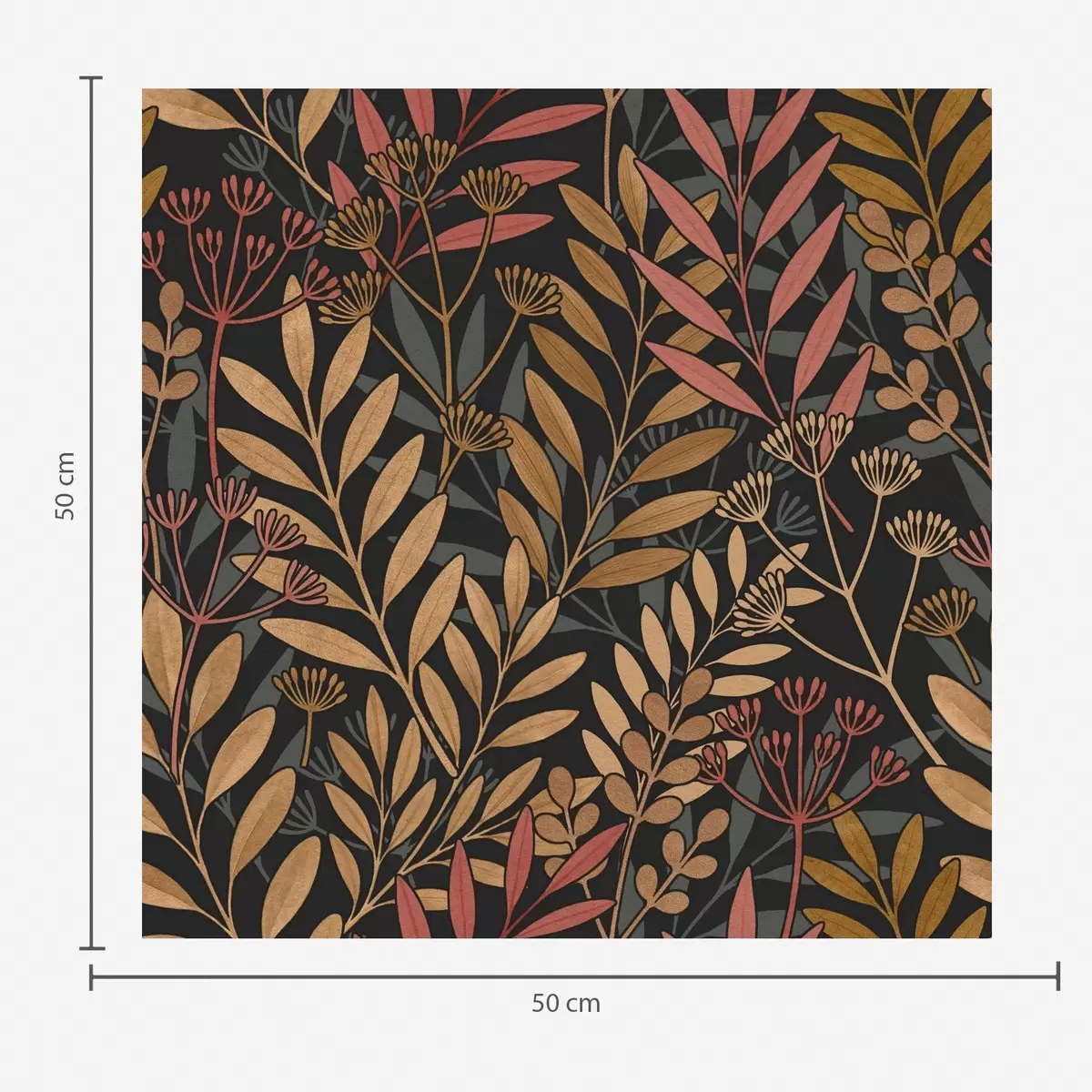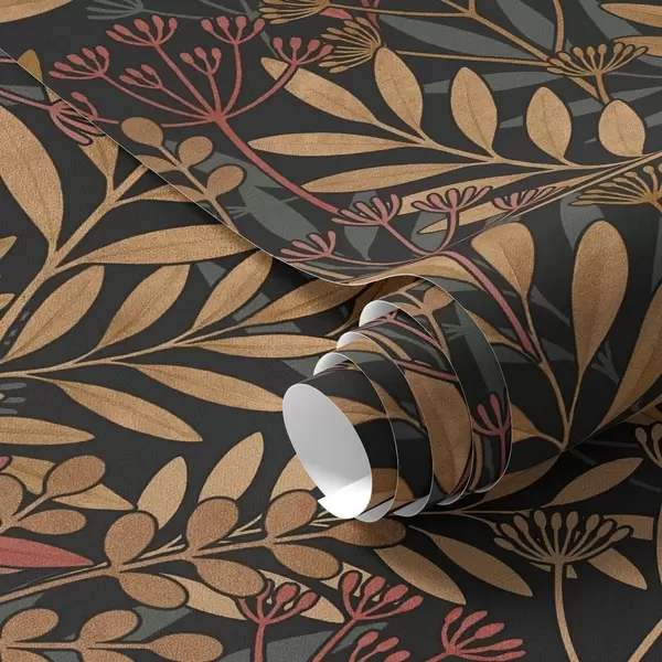 Tapetai Tamsus pievelė su stilizuotais lapais ir sėklų ankštimis Nr. a01020