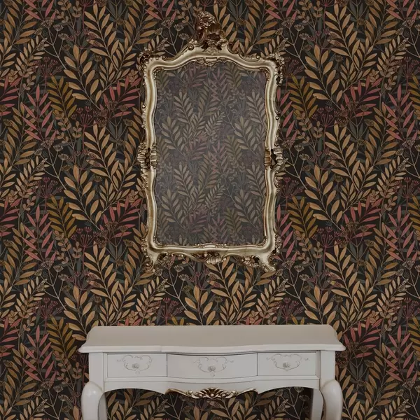 Tapetai Tamsus pievelė su stilizuotais lapais ir sėklų ankštimis Nr. a01020