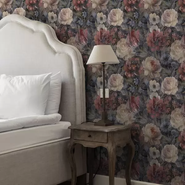 Tapetai Dailus didelių gėlių puokštė ant tamsiai mėlyno fono Nr. a01021