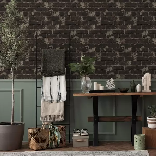 Tapetai Tamsus senas plytų sienos su nusidėvėjusiais plotais Nr. a01030
