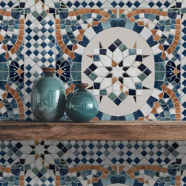 Tapetai Ryški marokietiška mozaika mėlynų-turkio atspalvių Nr. a01043