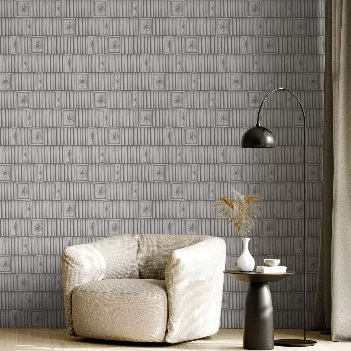Tapetai Reljefinės vertikalios plokštės su grafiniais gėlių įdėklas Nr. a01058