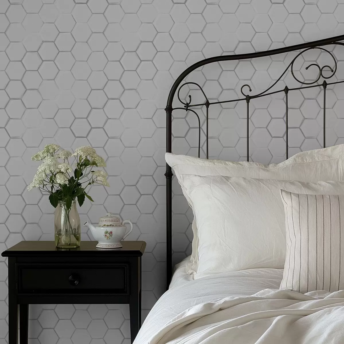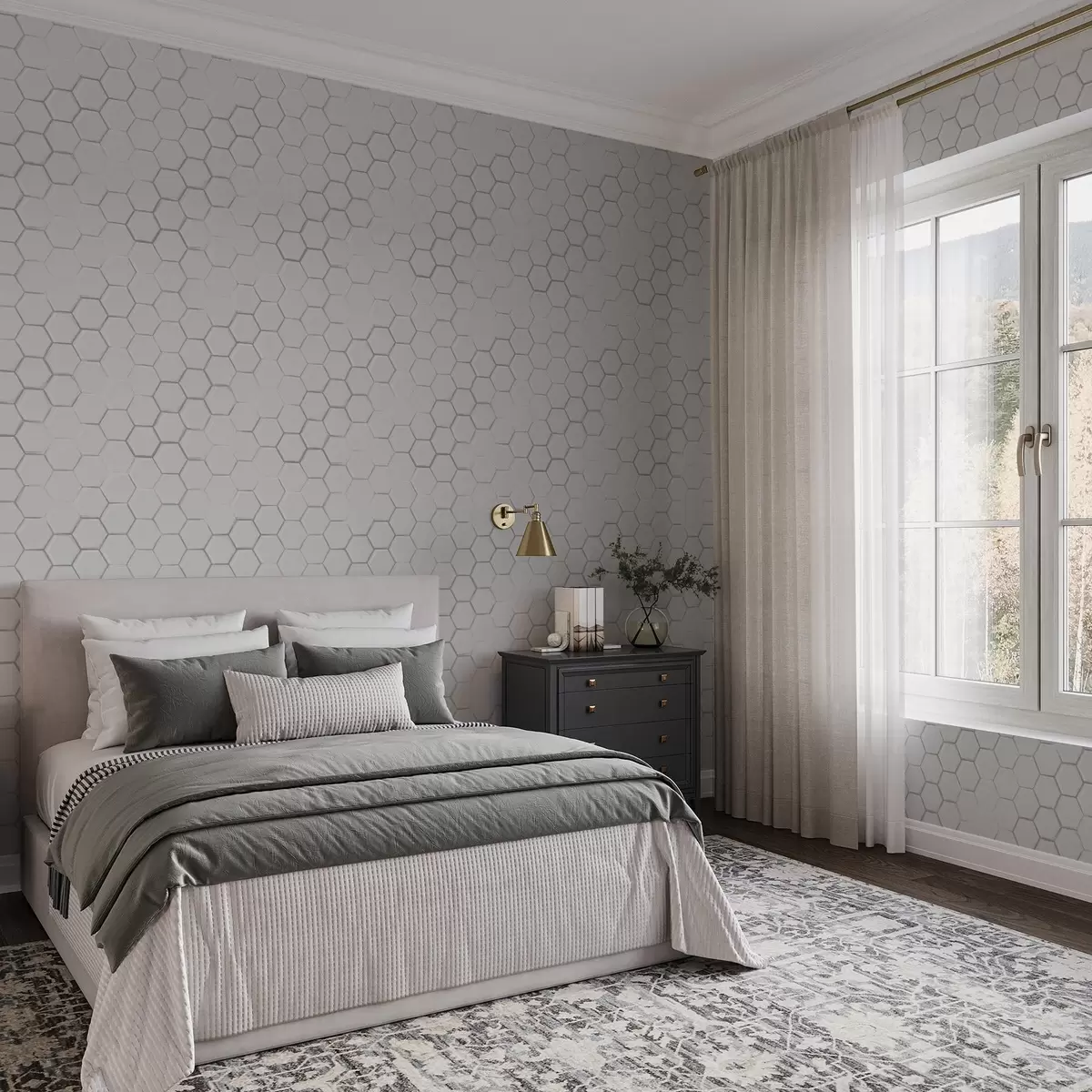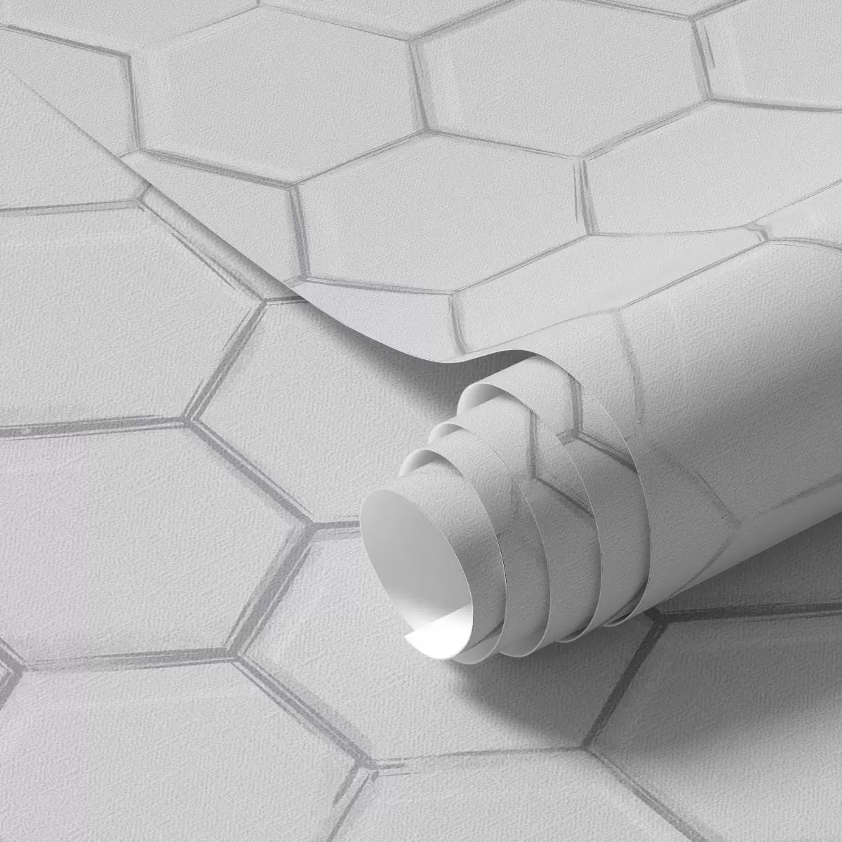 Tapetai Balta trimatė šešiakampė figūra ant lygaus fono Nr. a01059