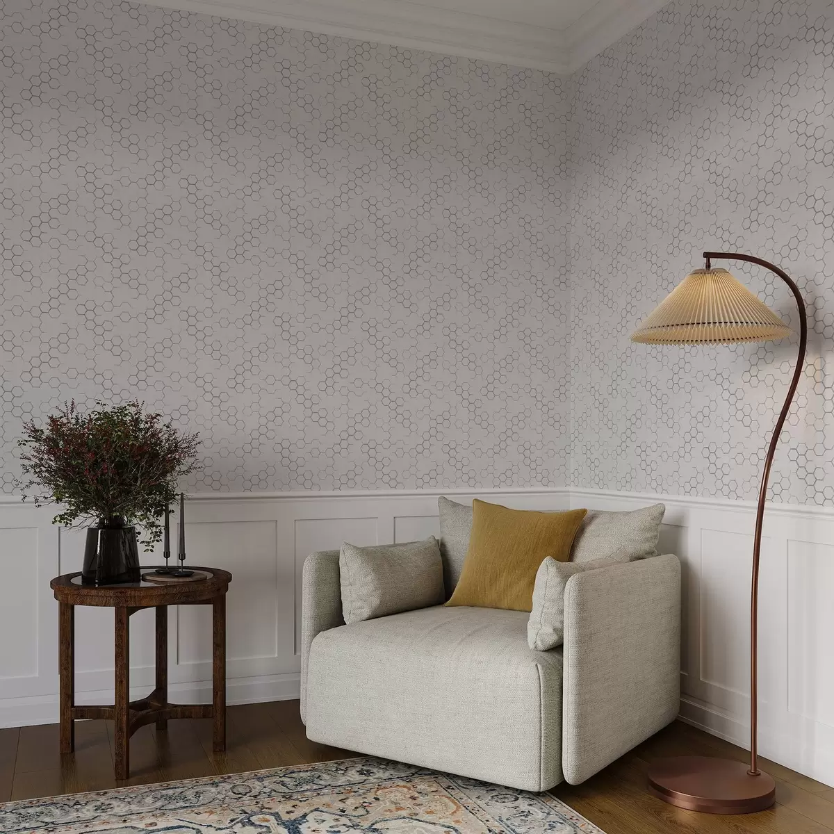 Tapetai Šviesus korio raštas su plonais pilkais kontūrais Nr. a01061