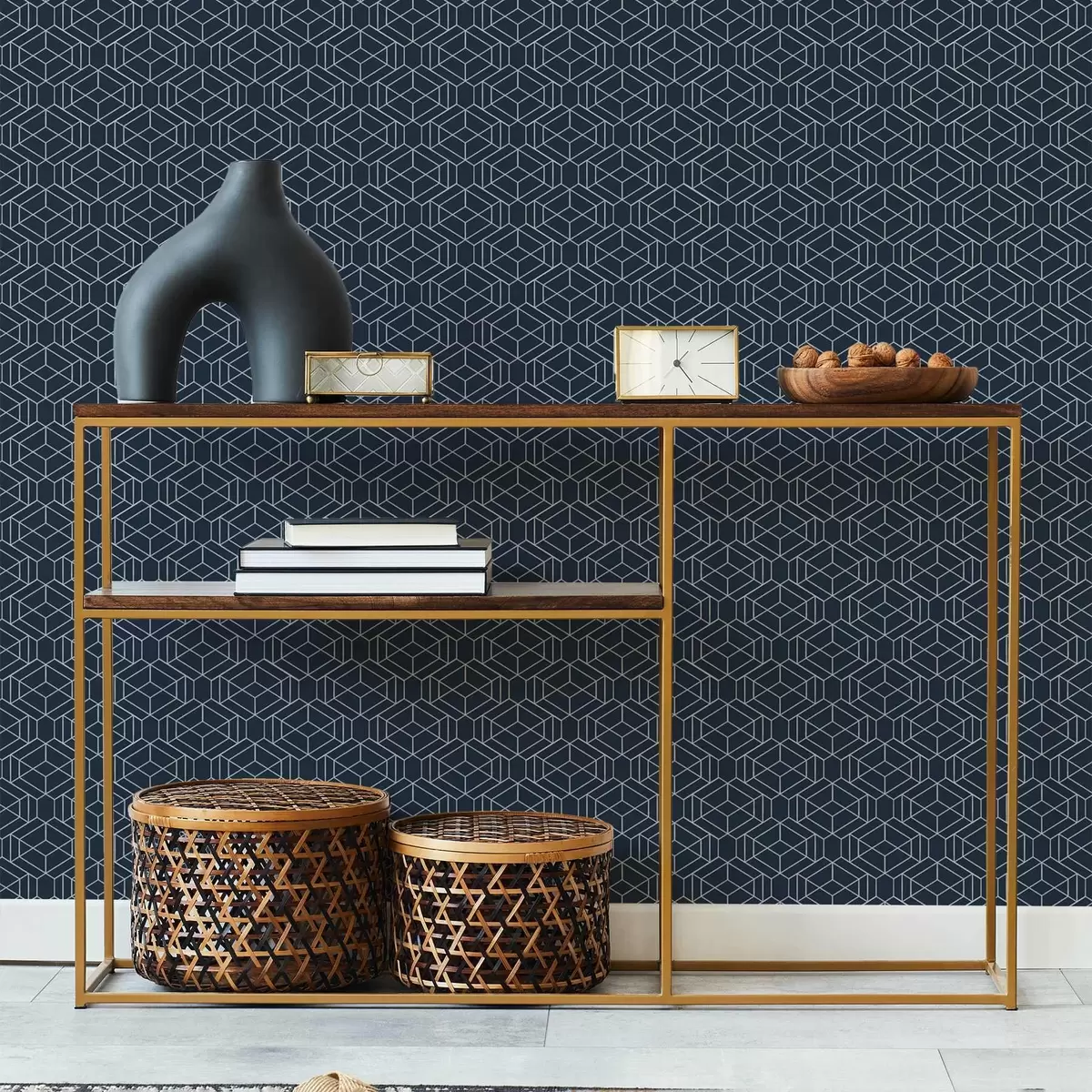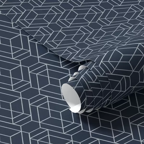 Tapetai Tamsiai mėlynas geometrinis kubų tinklelis Nr. a01066v1