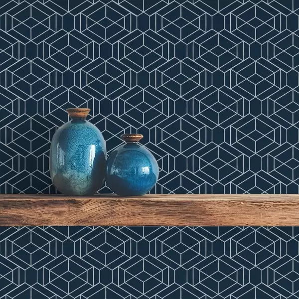 Tapetai Tamsiai mėlynas geometrinis kubų tinklelis Nr. a01066v1
