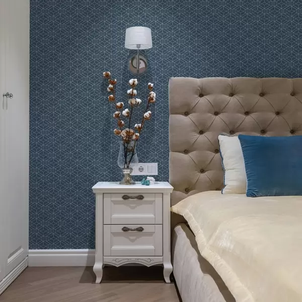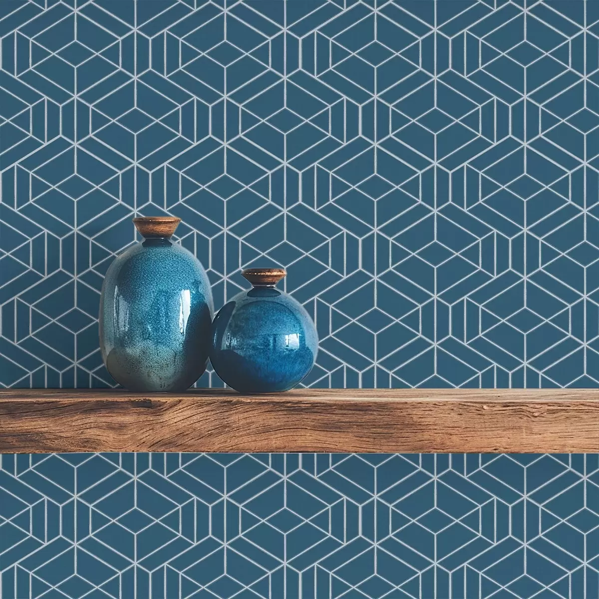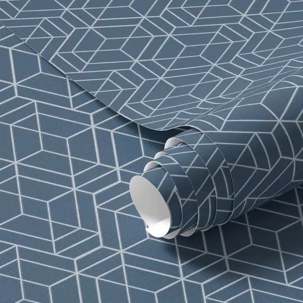 Tapetai Mėlynas fonas su baltais linijiniais kubais tinklelyje Nr. a01067v1