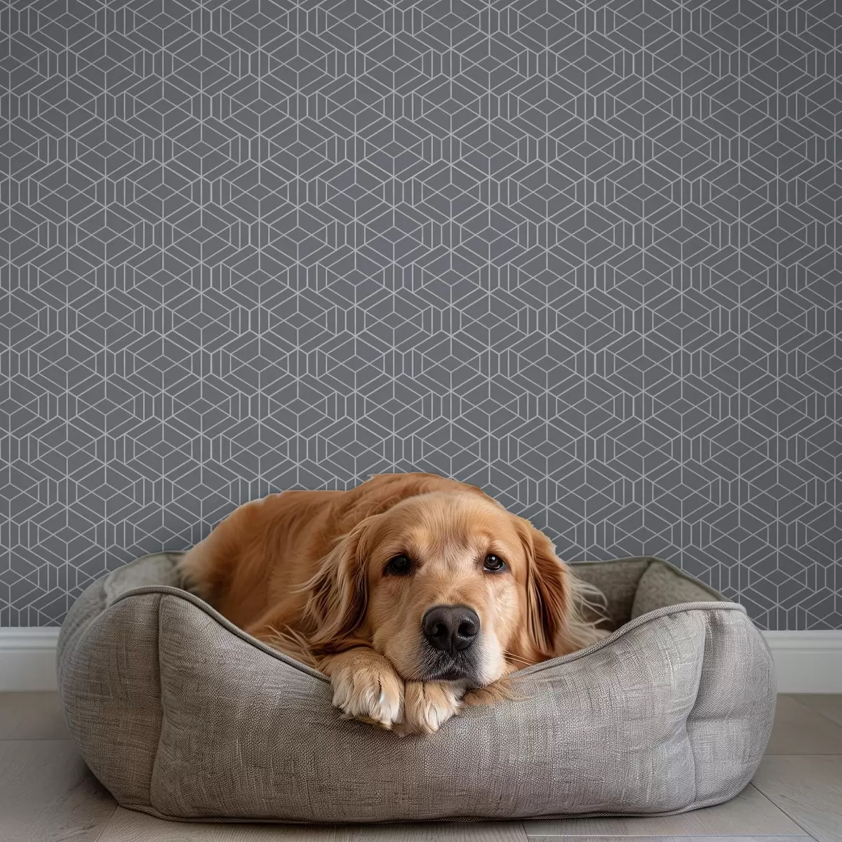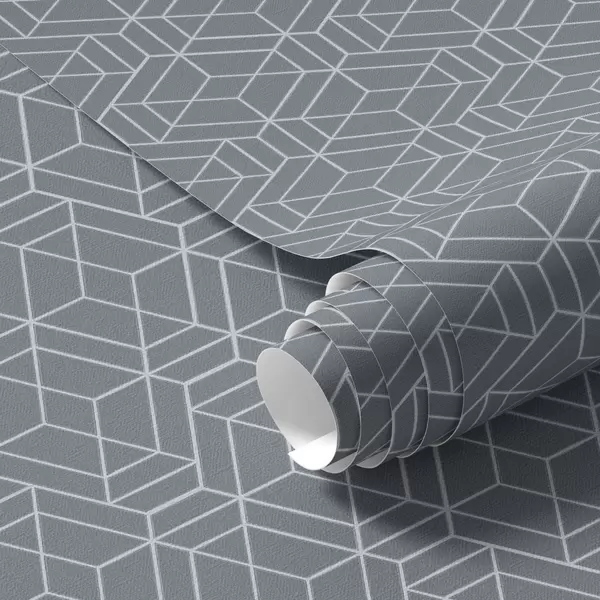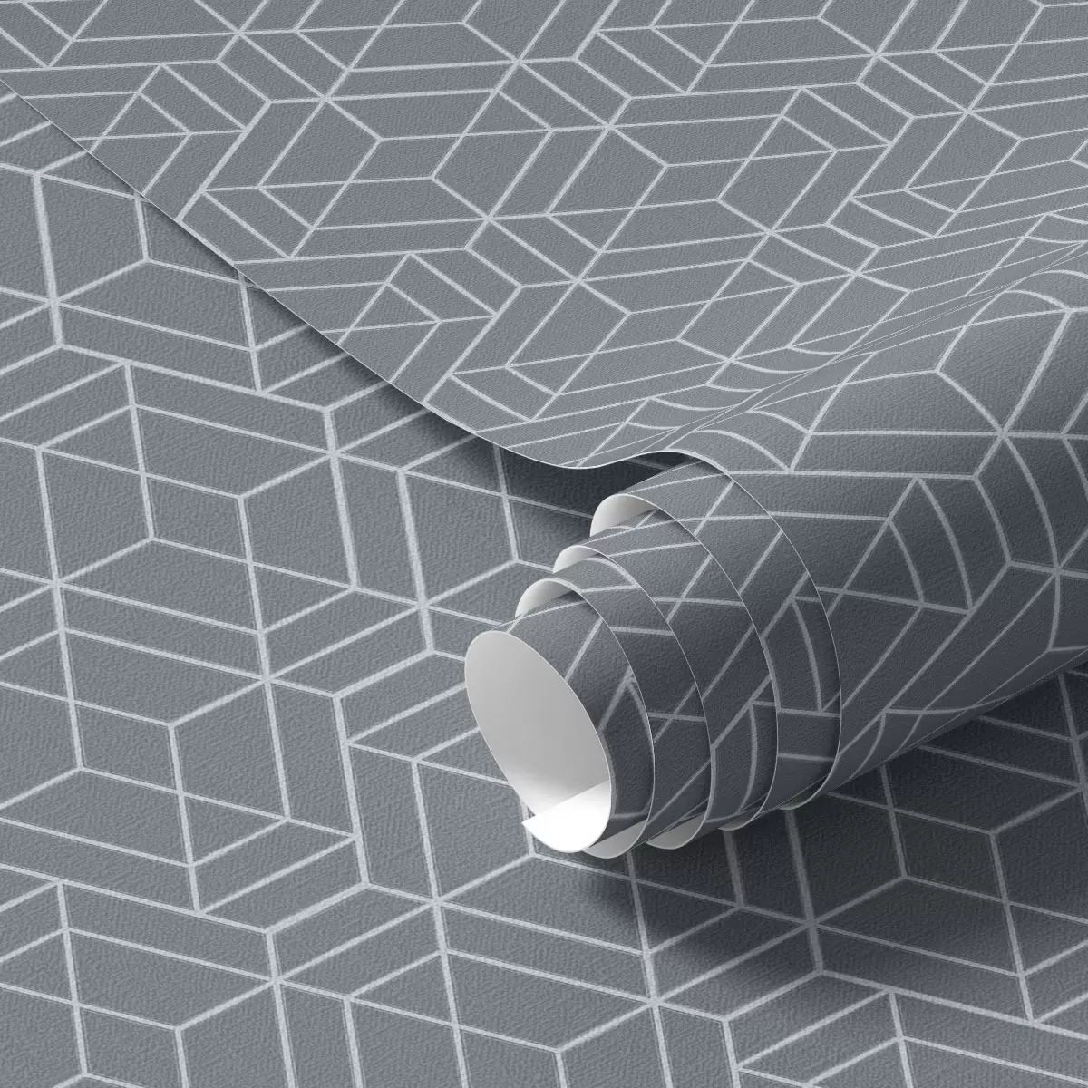 Tapetai Pilkas fonas su baltais trimačiais kubais tinklelyje Nr. a01067v2