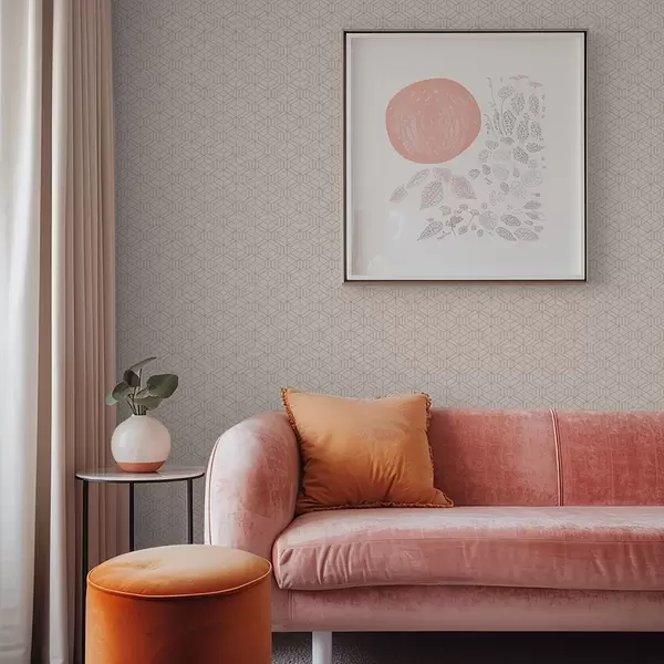 Tapetai Šiltas smėlio spalvos fonas su smulkiais grafiniais kubeliais Nr. a01067v3
