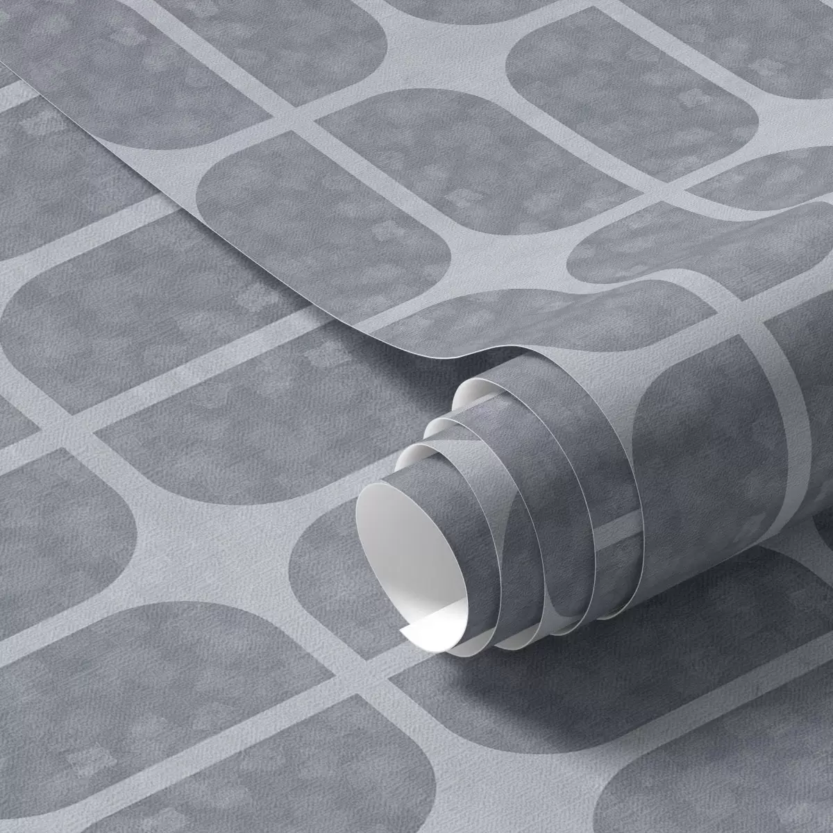 Tapetai Pilka mozaika su stačiakampiais arkomis ir švelnia tekstūra Nr. a01068
