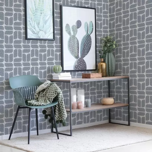 Tapetai Pilka mozaika, kurioje kaitaliojasi apvalios ir stačiakampės formos Nr. a01069