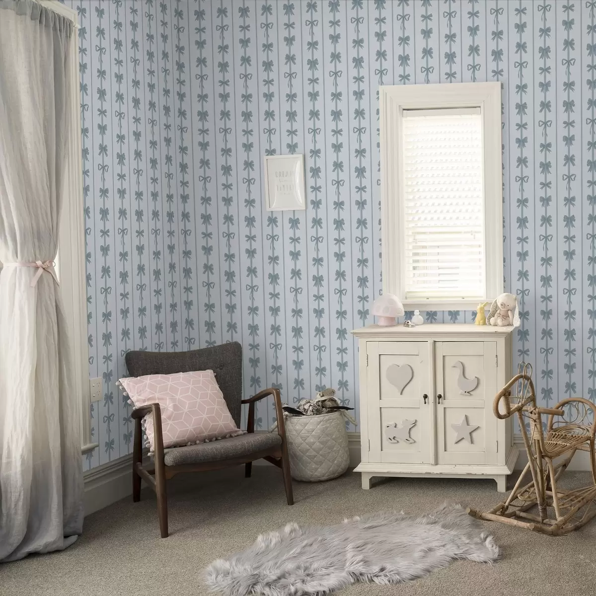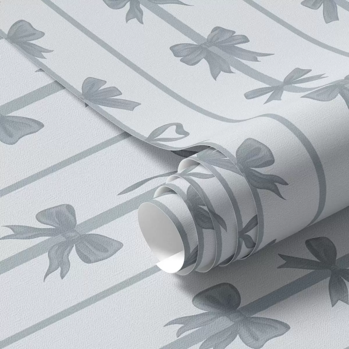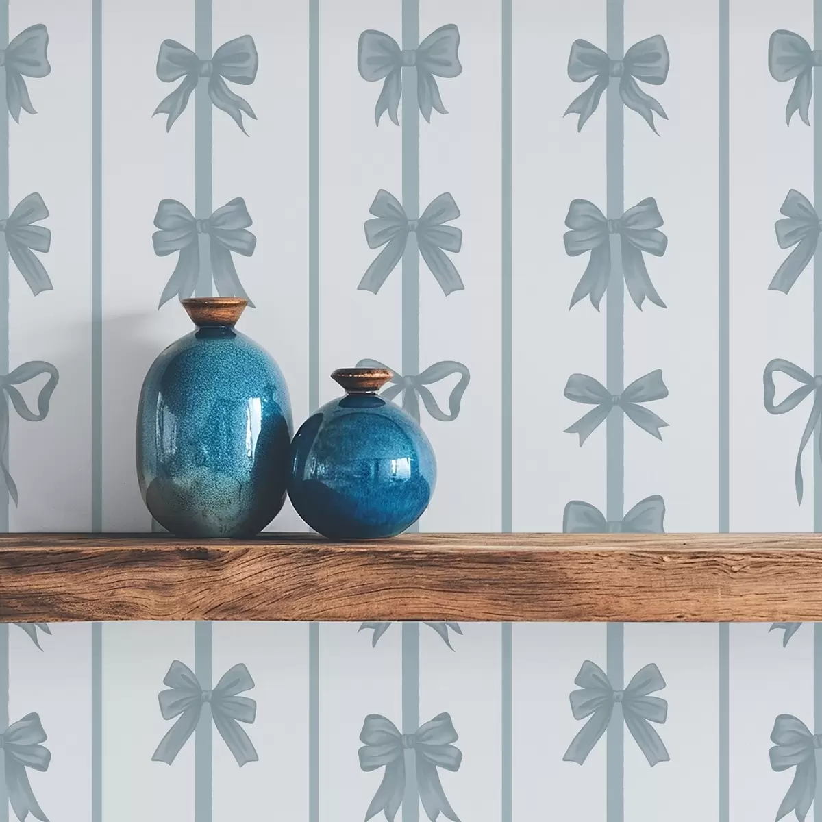Tapetai Mėlynos juostelės su kaspinais ant šviesaus fono Nr. a01075v2