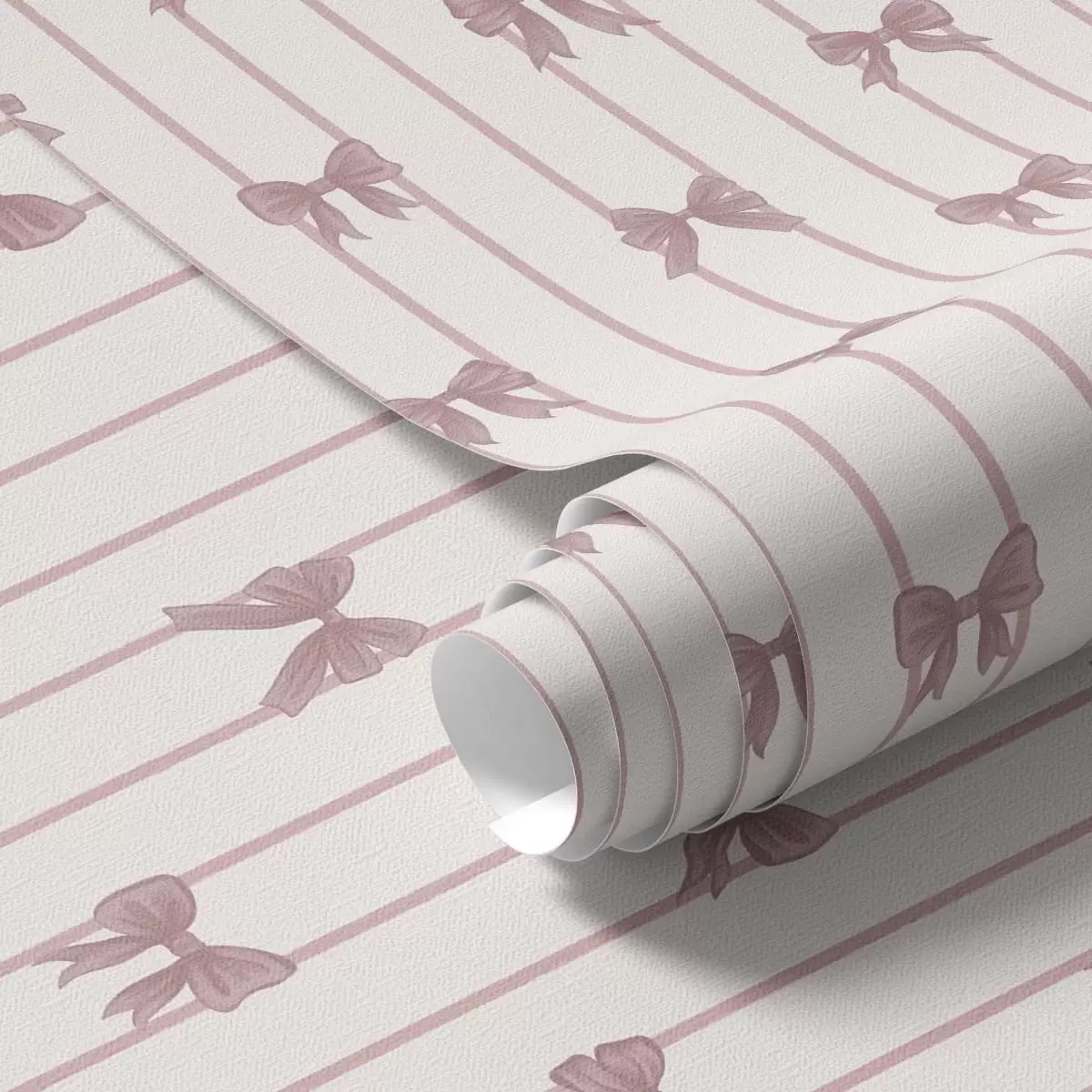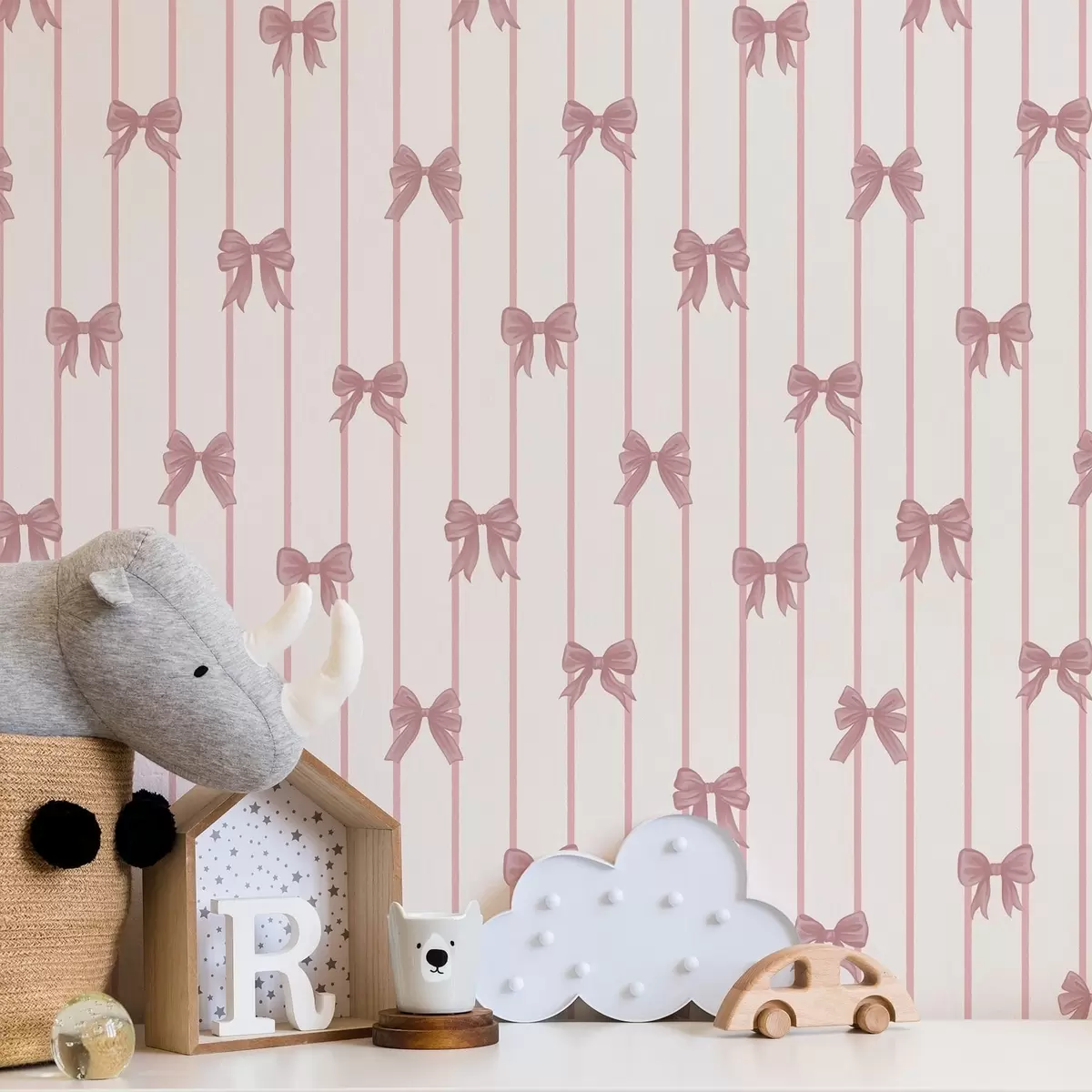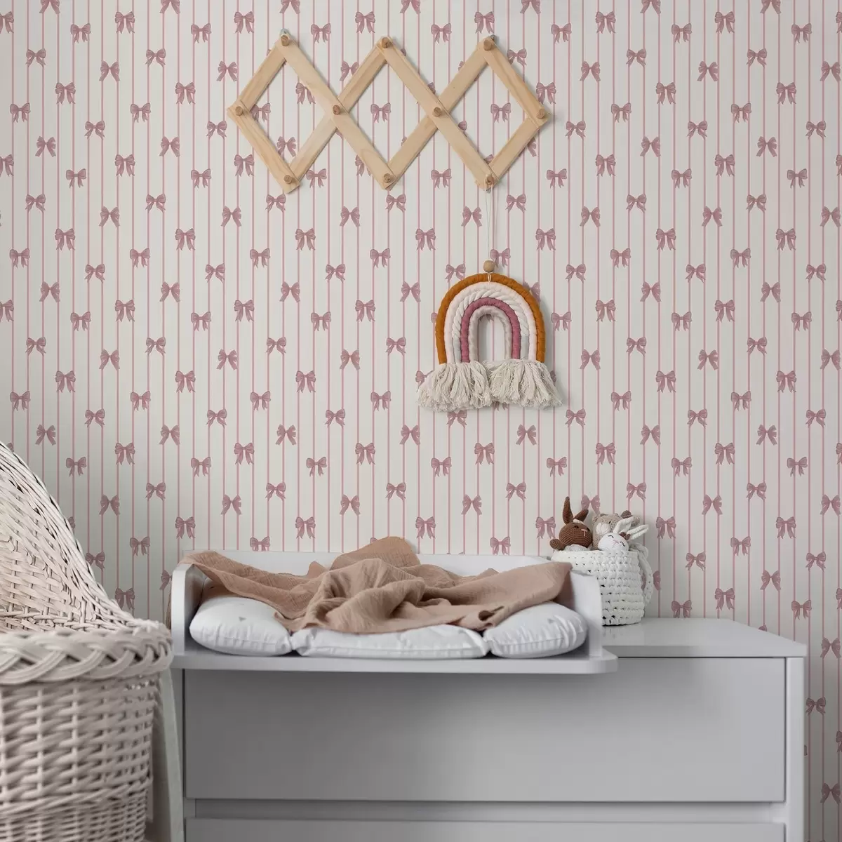 Tapetai Mažos rožinės kaspinos su vertikaliomis juostelėmis Nr. a01076