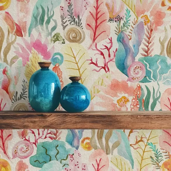 Tapetai Akvarelinis povandeninis sodas su koralais ir jūros dumbliais Nr. a01083