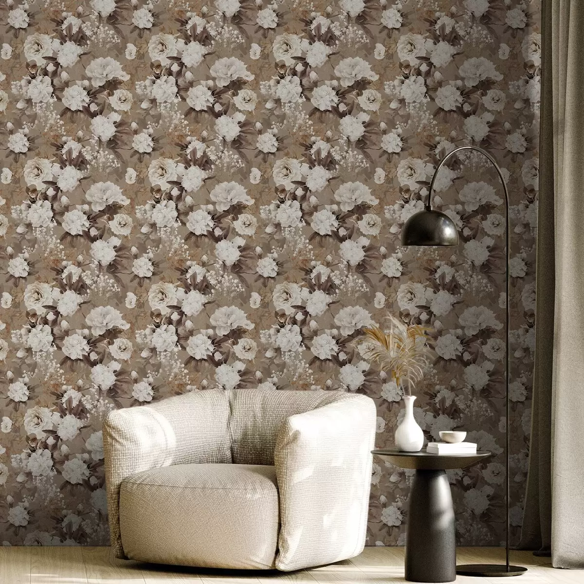 Tapetai Šiltos smėlio spalvos bijūnai ant tekstūruoto fono Nr. a01087
