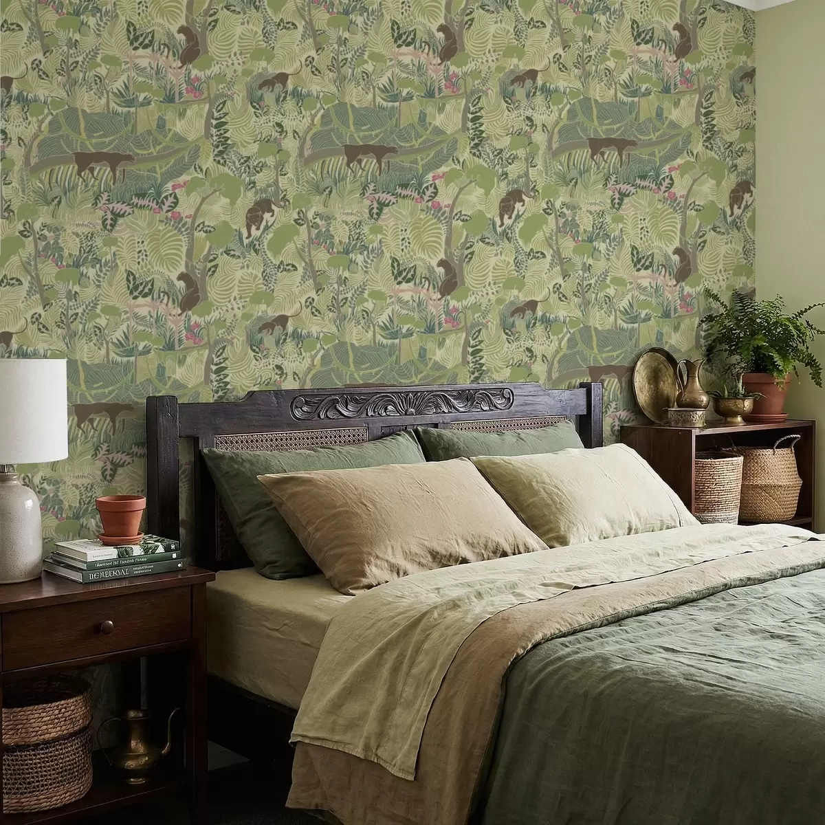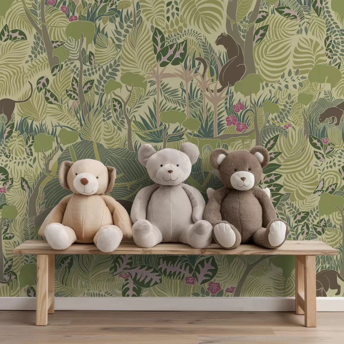 Tapetai Miško scena su gyvūnais ir tankiais lapais Nr. a01108