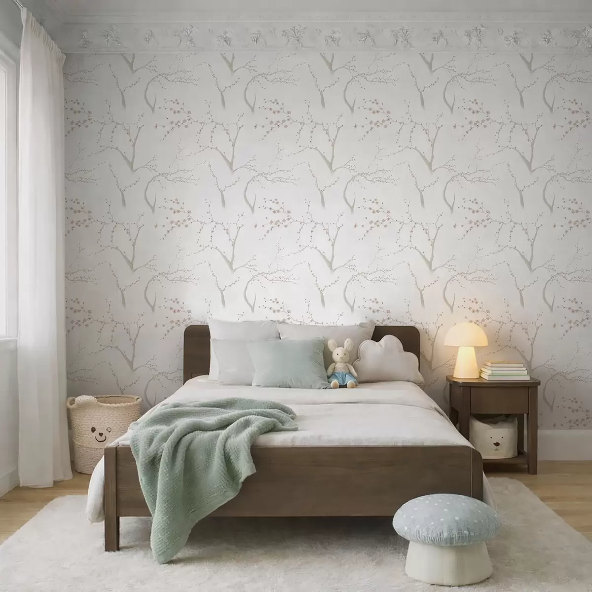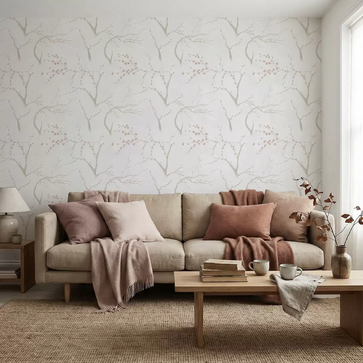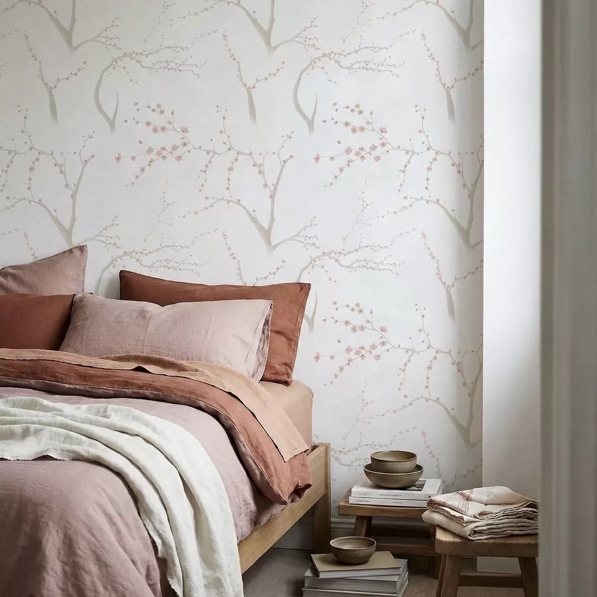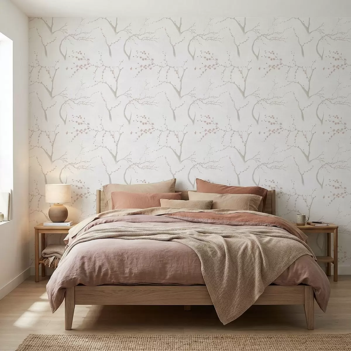 Tapetai Šviesios šakos su rožiniais žiedais Nr. a01111v1