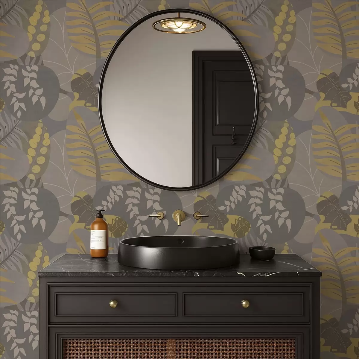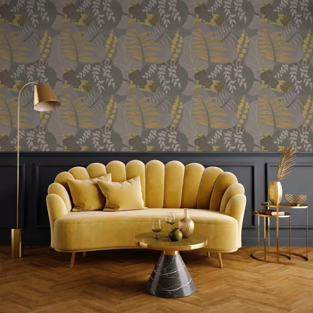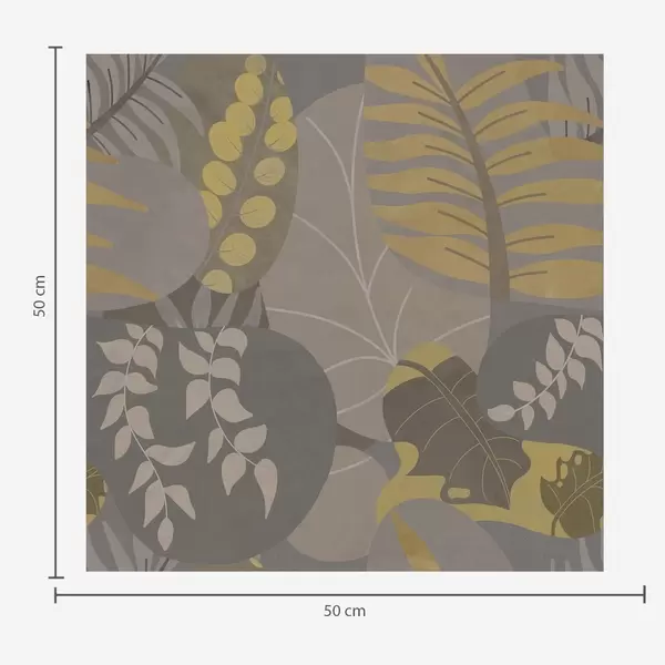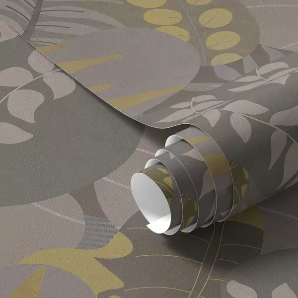 Tapetai Abstrakčios lapų kompozicijos pilkos ir geltonos spalvų tonais Nr. a01112