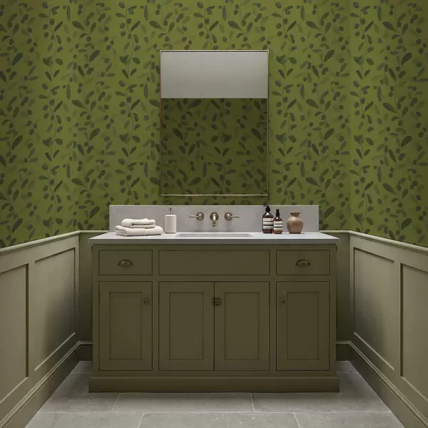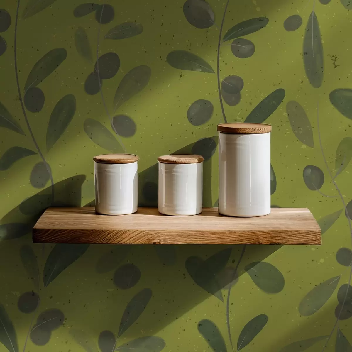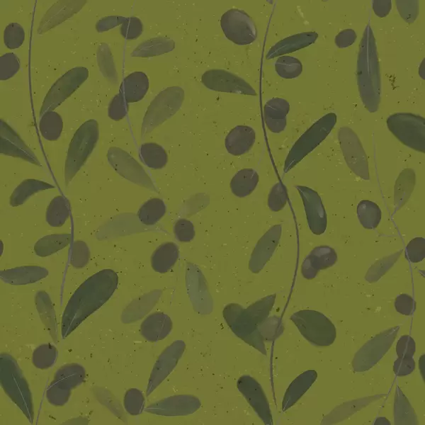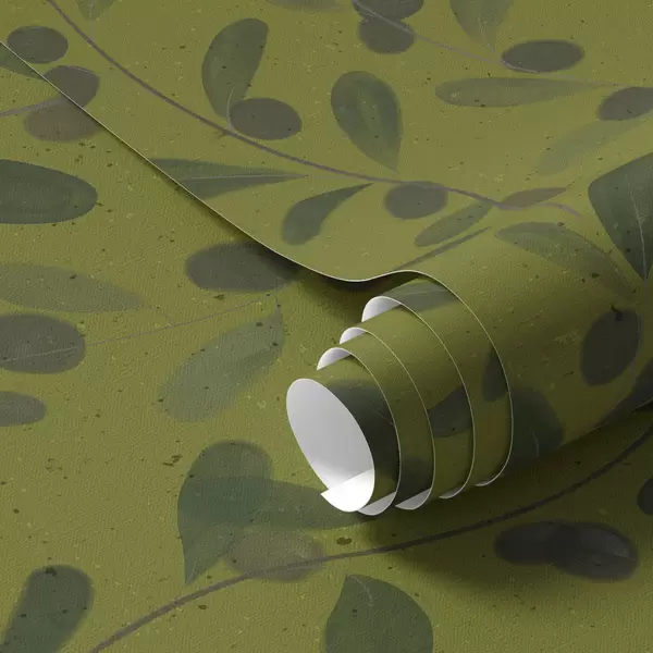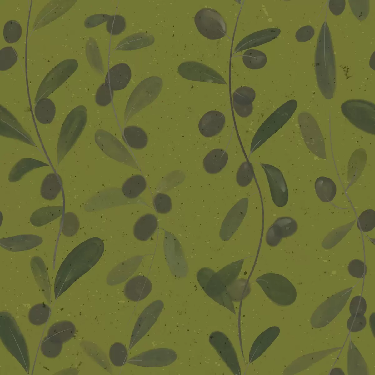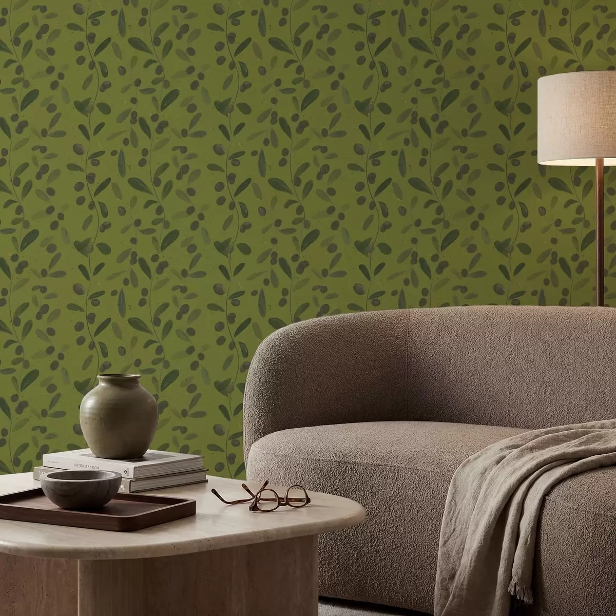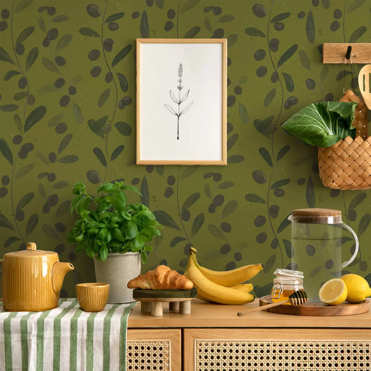 Tapetai Žalios šakos su lapais ir uogomis ant alyvuogės Nr. a01113