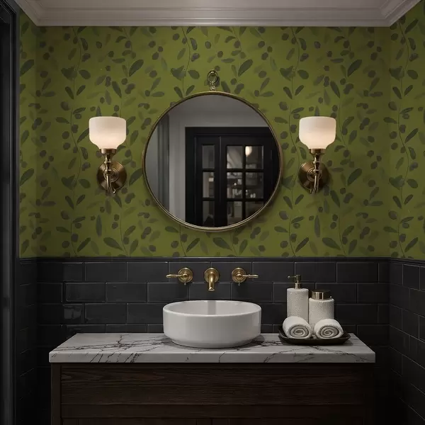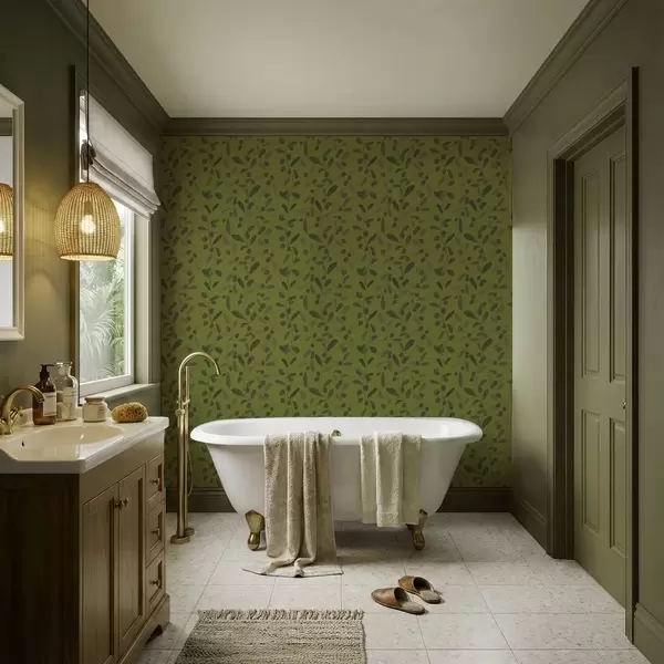 Tapetai Žalios šakos su lapais ir uogomis ant alyvuogės Nr. a01113