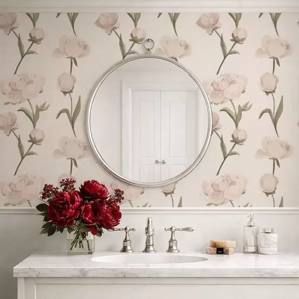 Tapetai Švelnios rožinės bijūnės šviesiu fonu Nr. a01114