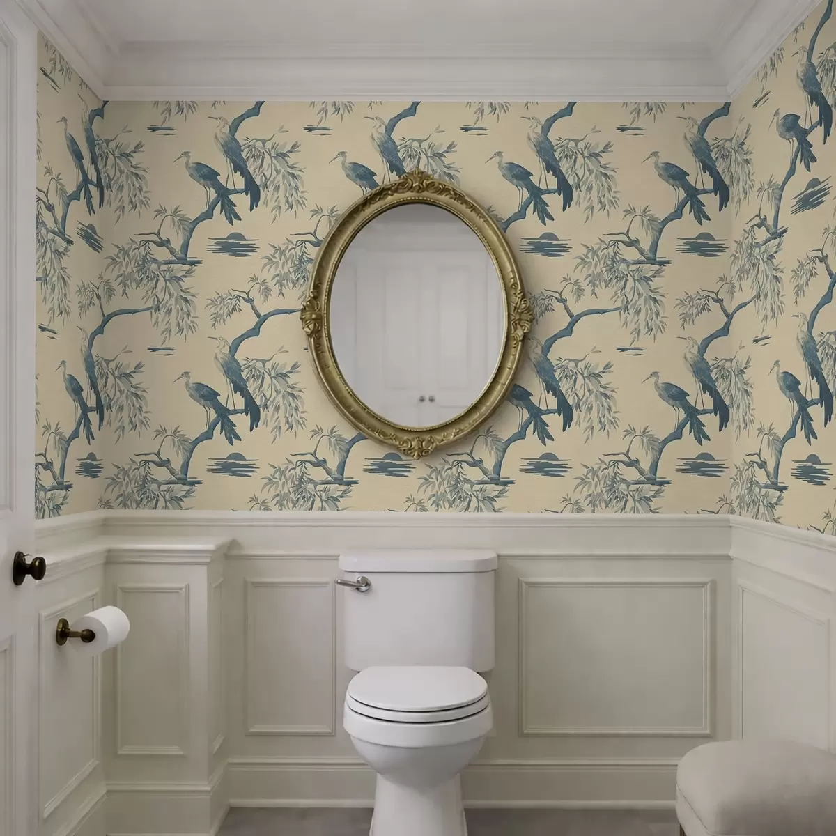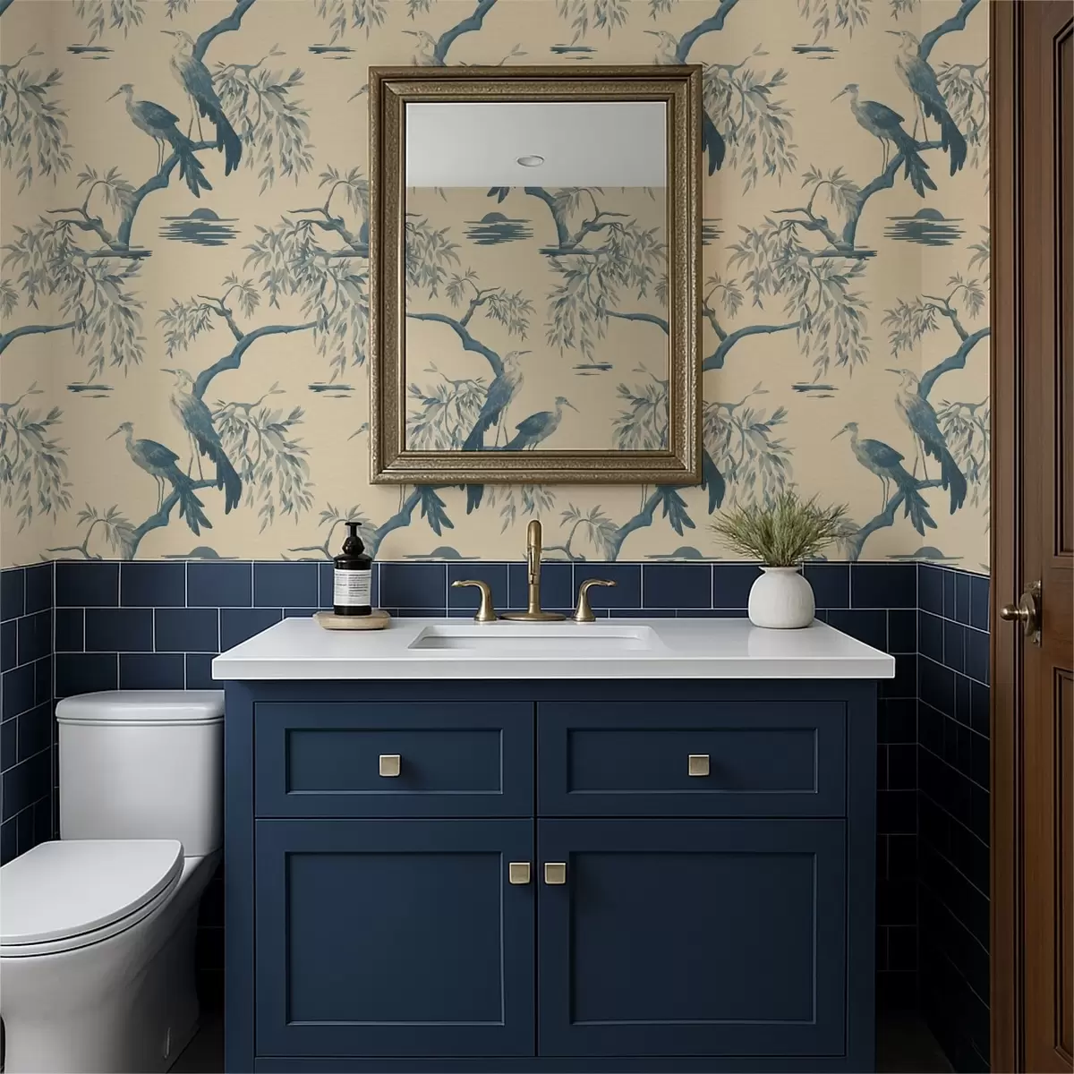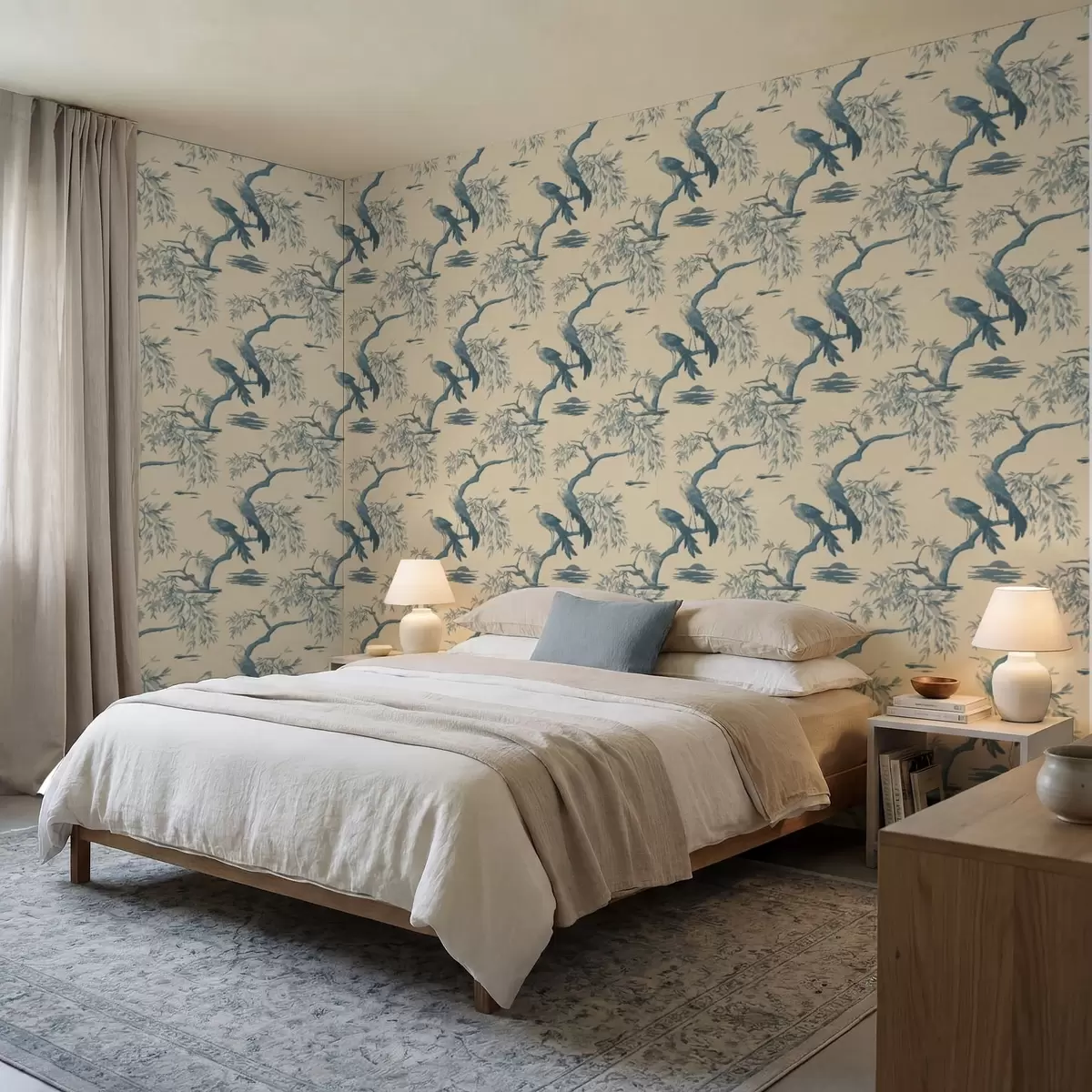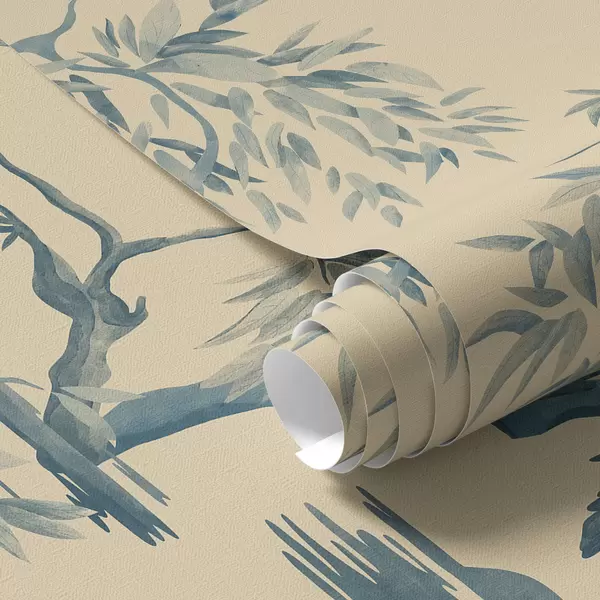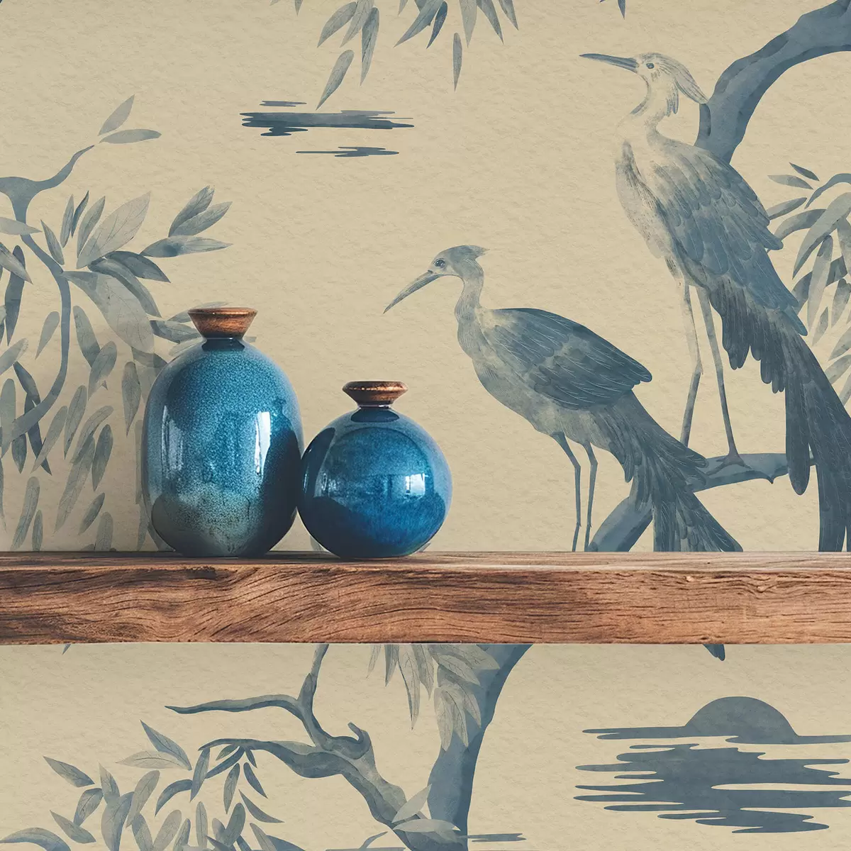 Tapetai Paukščiai ant šakos mėlynų atspalvių Nr. a01116