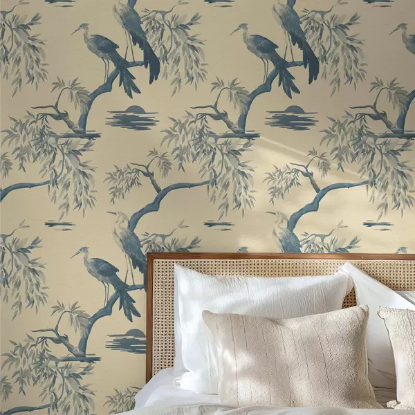 Tapetai Paukščiai ant šakos mėlynų atspalvių Nr. a01116