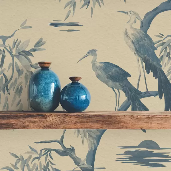 Tapetai Paukščiai ant šakos mėlynų atspalvių Nr. a01116