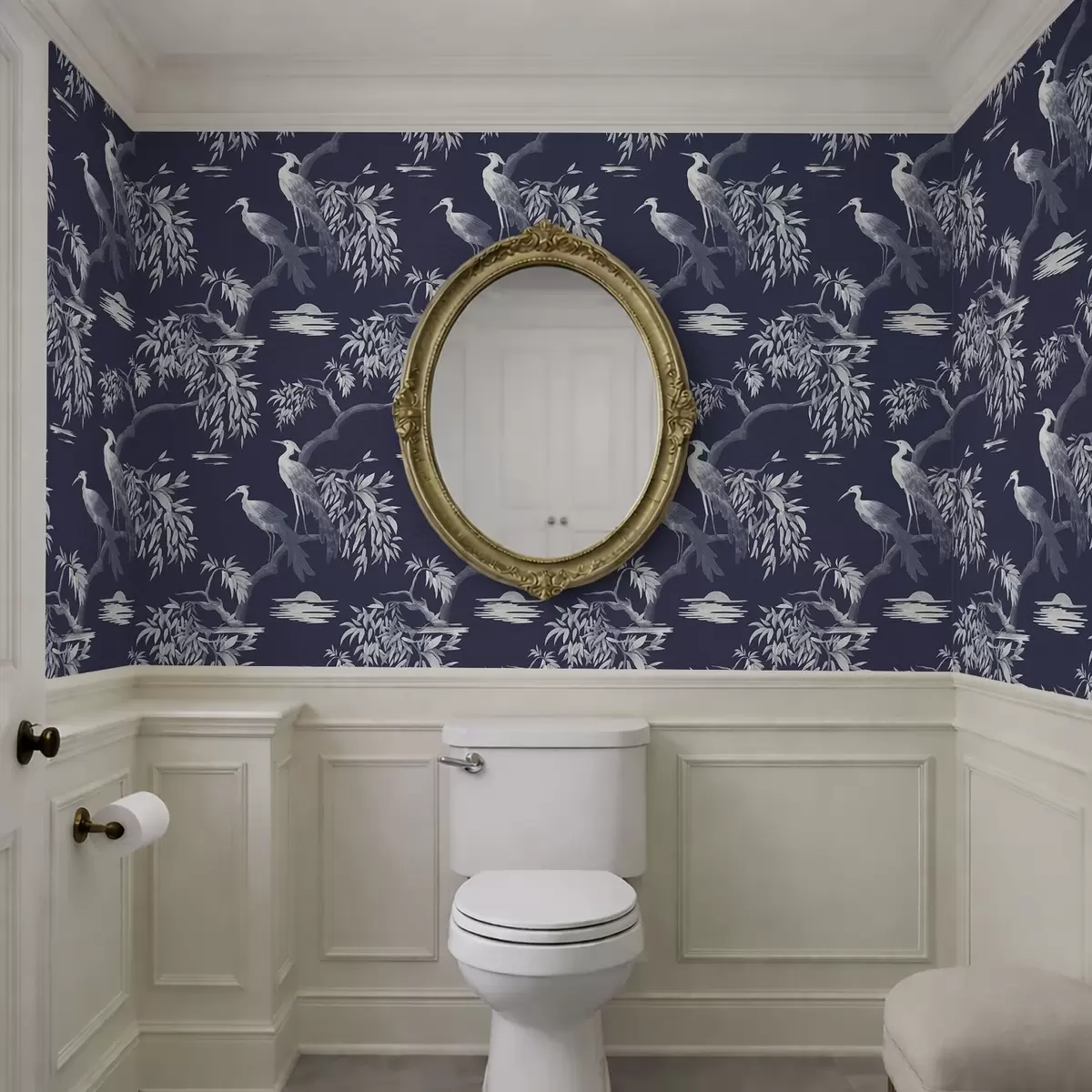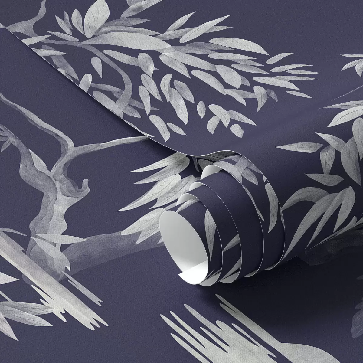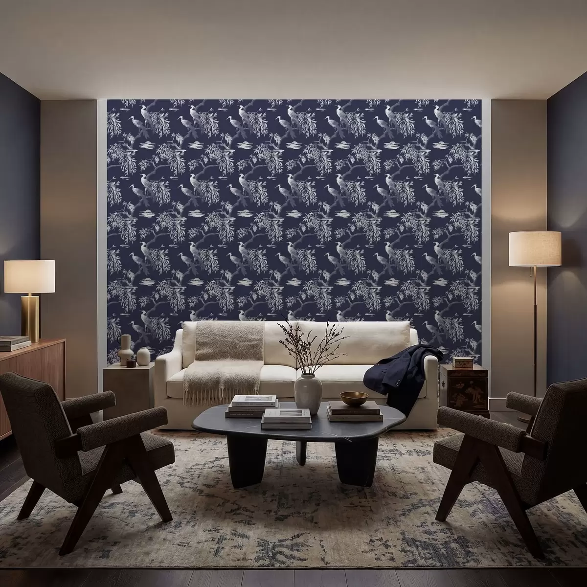 Tapetai Paukščiai ant šakos tamsiai mėlyname fone Nr. a01116v1