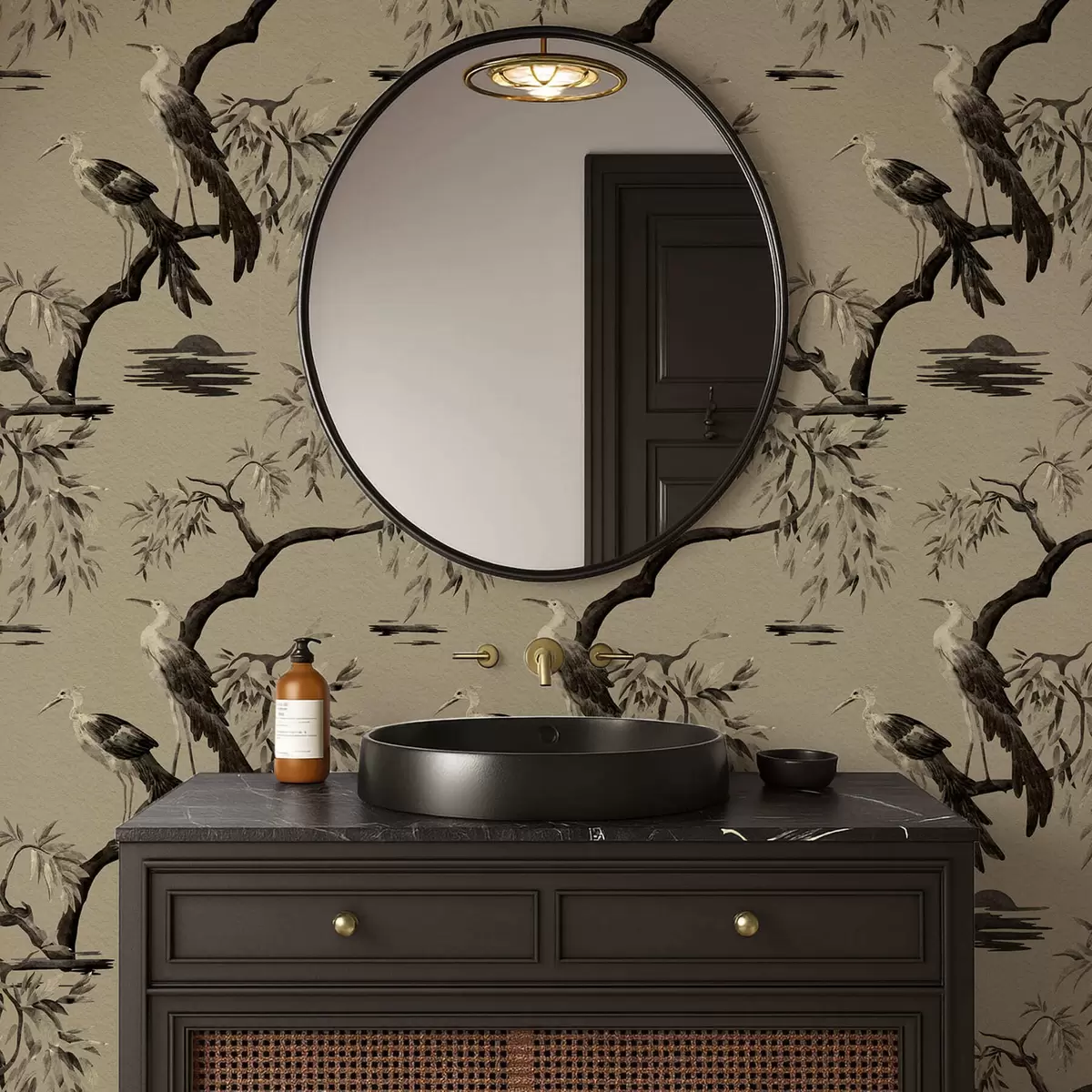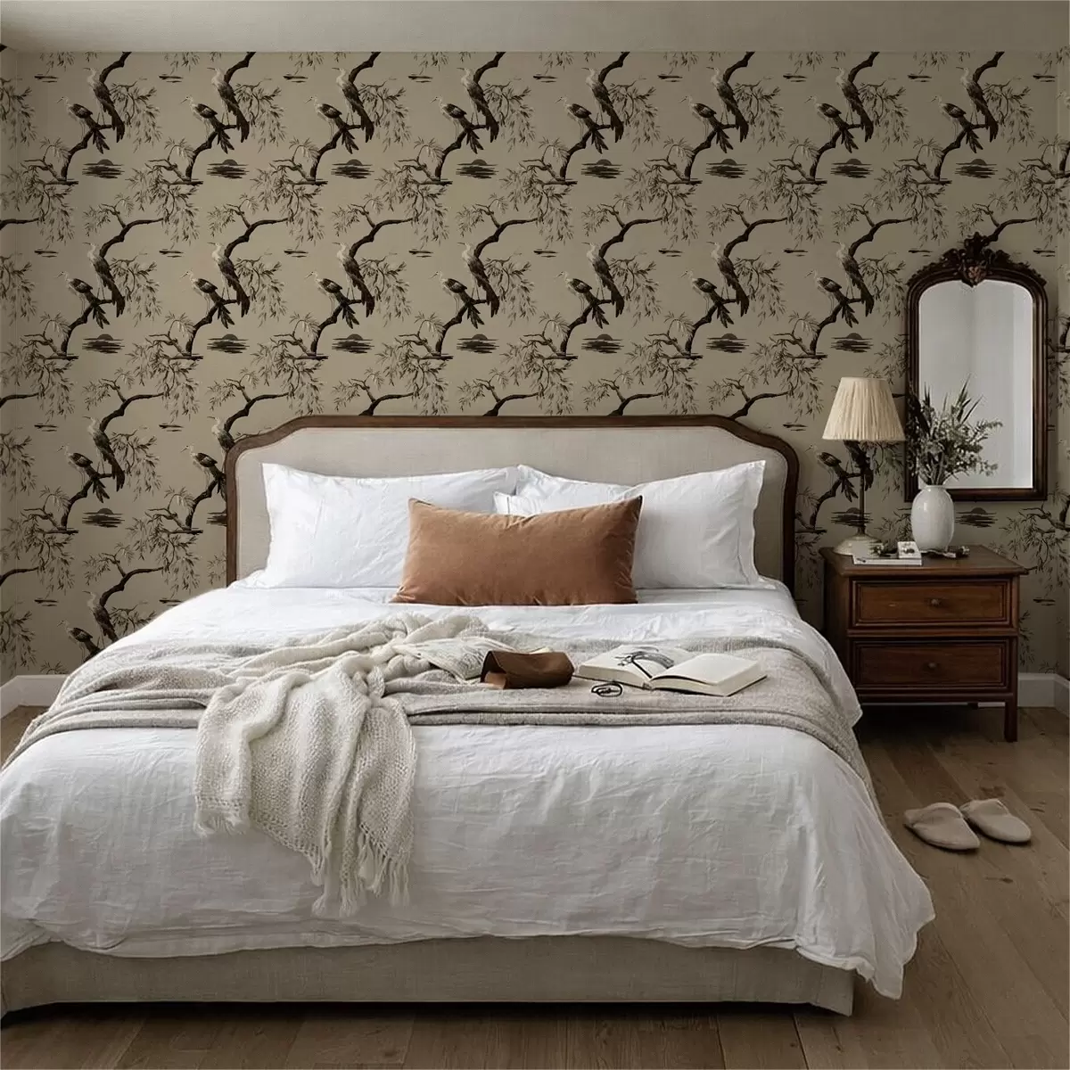 Tapetai Paukščiai ant šakos monochrominiais atspalviais Nr. a01116v2