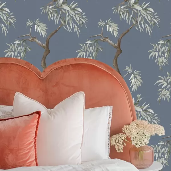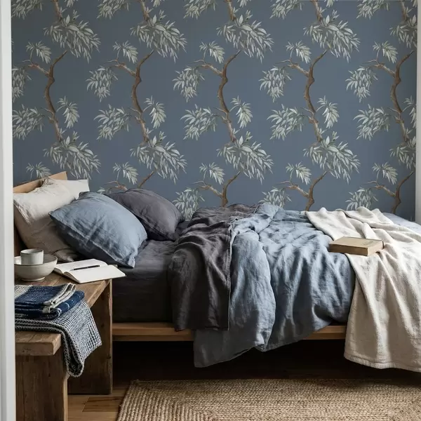 Tapetai Medžio šaka su lapais mėlyname fone Nr. a01117