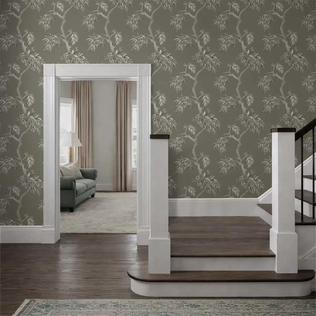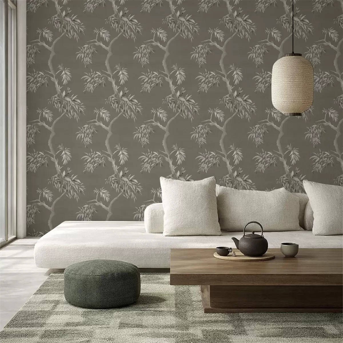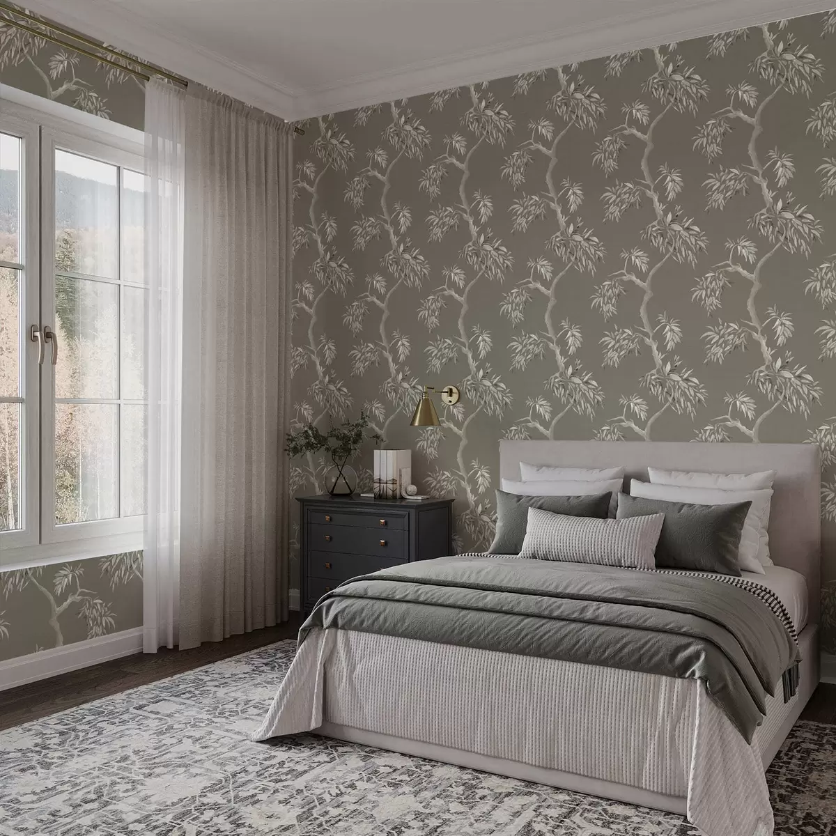 Tapetai Šviesus šakelių su lapais ant alyvuogių fono Nr. a01117v1