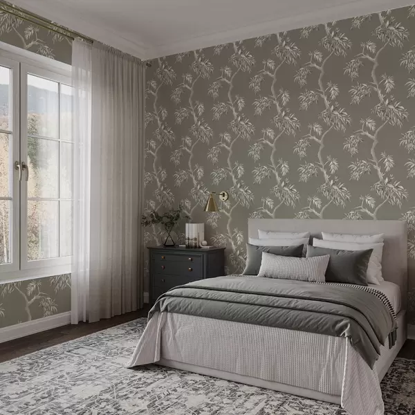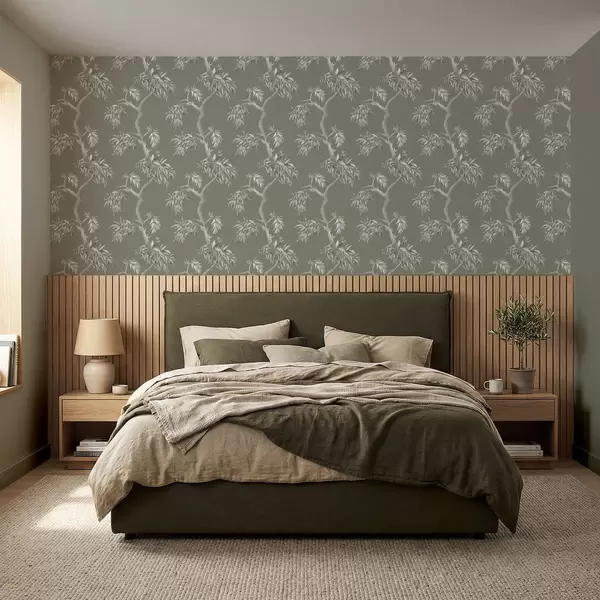 Tapetai Šviesus šakelių su lapais ant alyvuogių fono Nr. a01117v1
