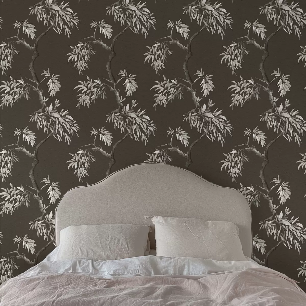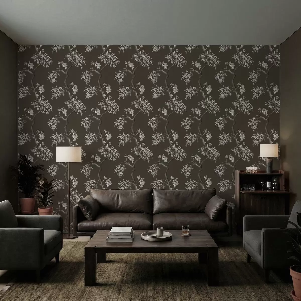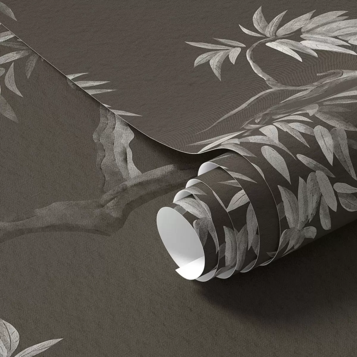 Tapetai Monochrominė šaka su lapais ant tamsaus fono Nr. a01117v2