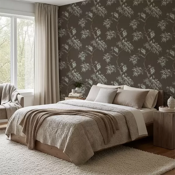 Tapetai Medžio šaka su lapais ant rudo fono Nr. a01117v3