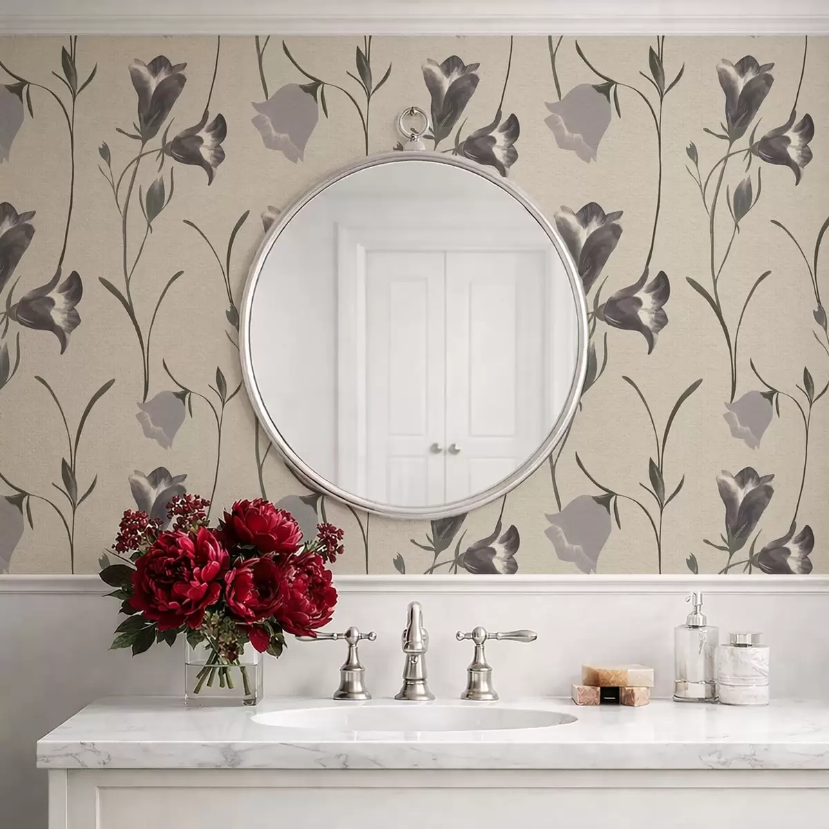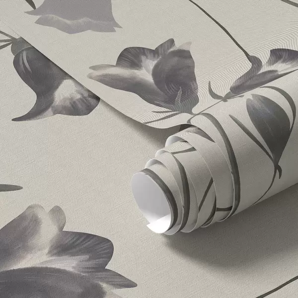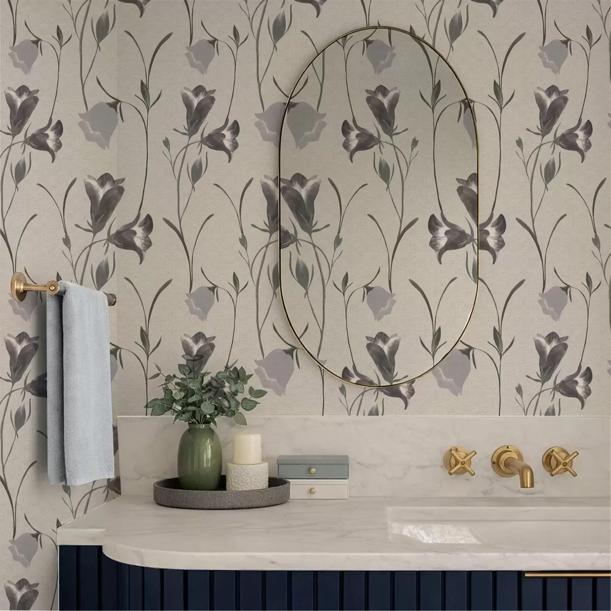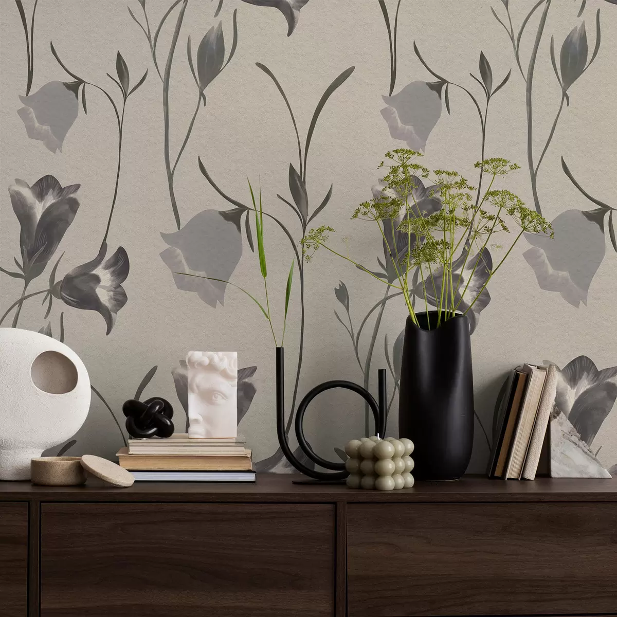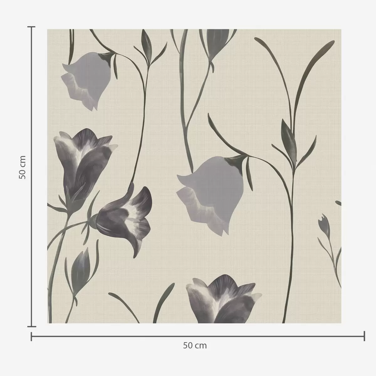 Tapetai Pilkos varpelio formos gėlės ant šviesiai smėlio spalvos fono Nr. a01119
